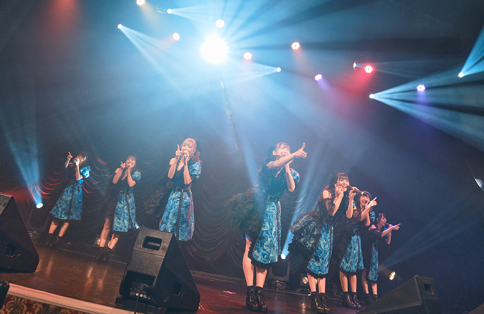 「みんなといっぱいのハピネスを感じていきましょう」の声を合図に、メンバーどうしがギュッと寄り添い、愛らしい振りを見せながら『3000年に一度のハピネス』を届けてくれた。彼女たちは、「大好きな人たちに大好きと言おう」と、応援してくれる一人一人にその言葉と幸せを届けてきた。告白するように落ちサビを歌った咲山しほの歌声に幸せを感じれば、7人が大きく手を振りながら花道で「ラララララ」と歌う声に合わせ、フロア中の人たちも大きく手を振りながら歌っていた姿にもハピネスを覚えていた。