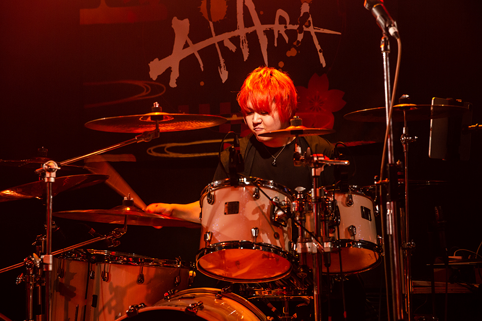 ジャジーな音色が響き渡る場内。小躍りする篠笛の音を合図に、楽曲は『流音』へ。身体を大きく揺さぶり、哀愁メロウな旋律の中へ、気持ち沸き立つメロディアスな音色をTAKAが描き加える。その音へ寄り添うように見せながら、しっかりと背中を蹴りあげるTommyの箏の音色や、圧を持った演奏陣。インストナンバーを通すことで、AKARAが魅力にしている和ロックの神髄を感じられた。激しさの中にも哀愁や温かい心模様を描きあげる。だから、熱を抱いた流れるような演奏に胸が熱く揺れていた。