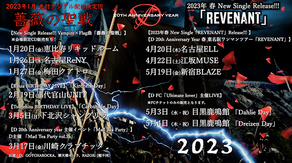 D 20th Anniversary Year 春 東名阪ワンマンツアー「REVENANT」