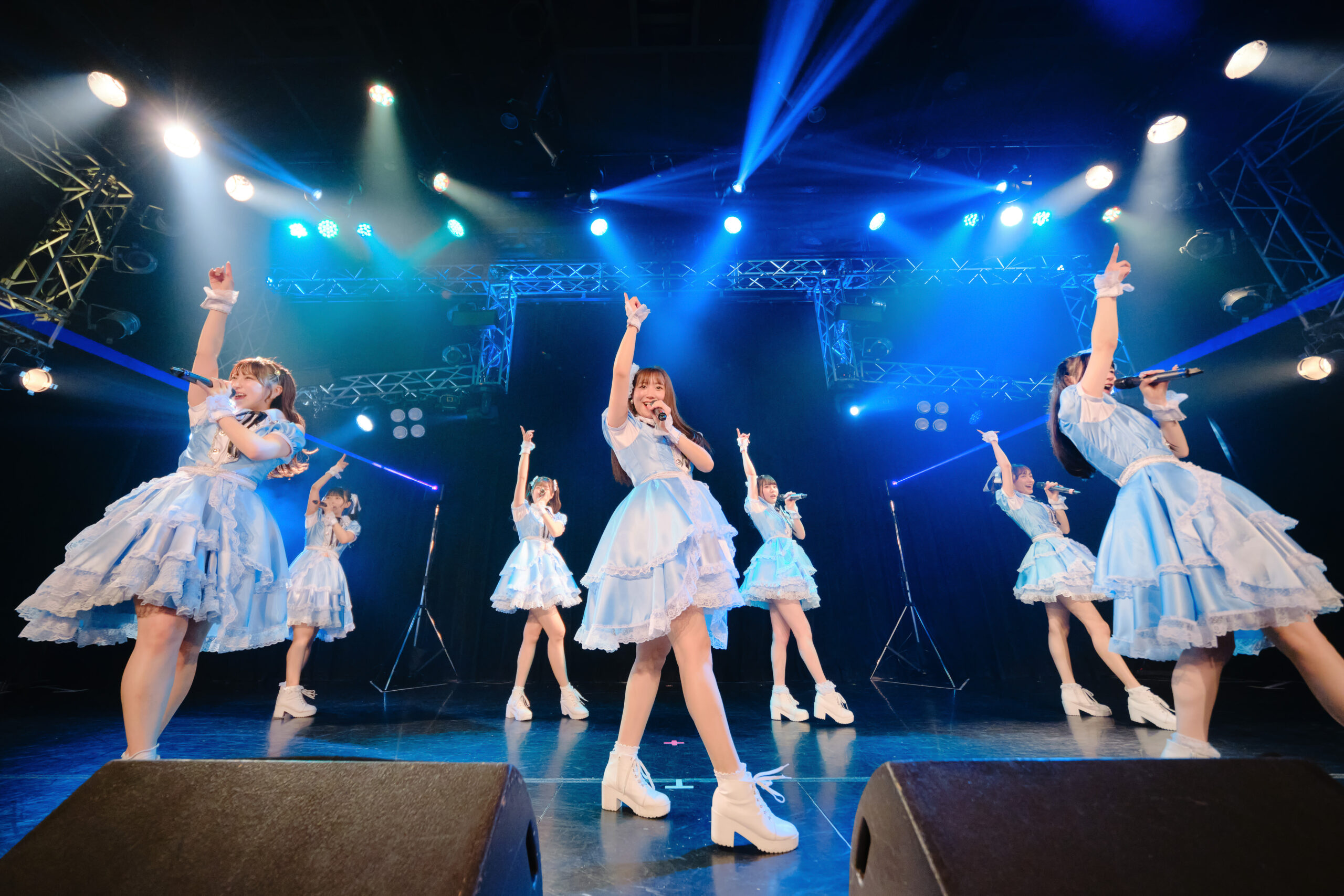 最後にSAY-LAは、これからも幻の花という夢の宝物を一緒に探しにいこうと、スカートを軽やかになびかせて『水色ラフレシア』を歌唱。「あなたとならみつけられる」と、フロア中にいる人たちへ優しい眼差しを向けて彼女たちは歌ってくれた、その姿が愛らしい。最後に7人で、舞台の上に花開いたラフレシアのポーズを見せてくれたのも印象的だった。