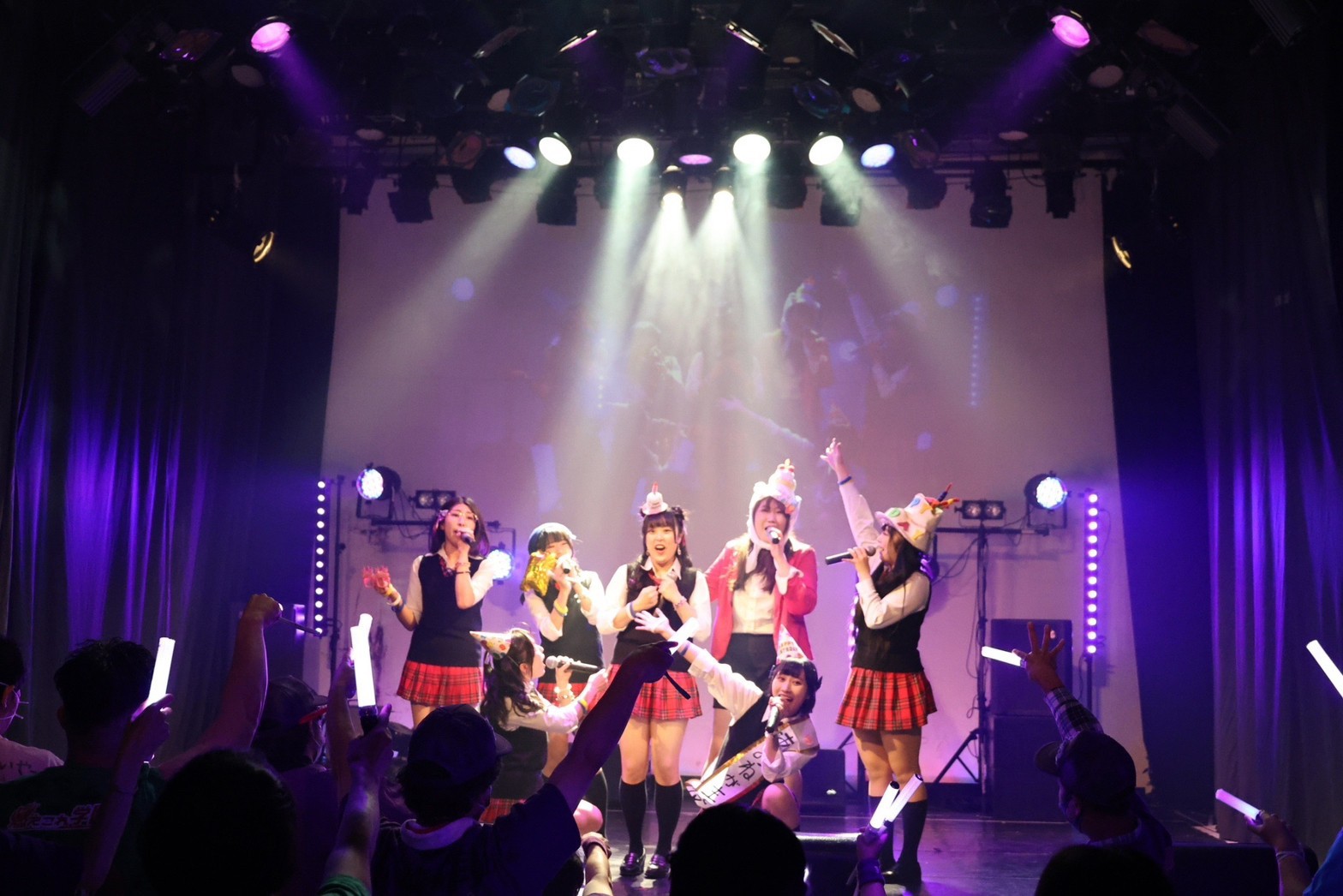 燃えこれ学園が月2回、有観客で行なっている「ライブ配信」。6月6日(火)に初台DROOSで行ったのが、「蒼音舞生誕祭」公演。この日は、當銘菜々・仲川つむぎ・三浦千鶴が諸事情からリモートという形で出演。