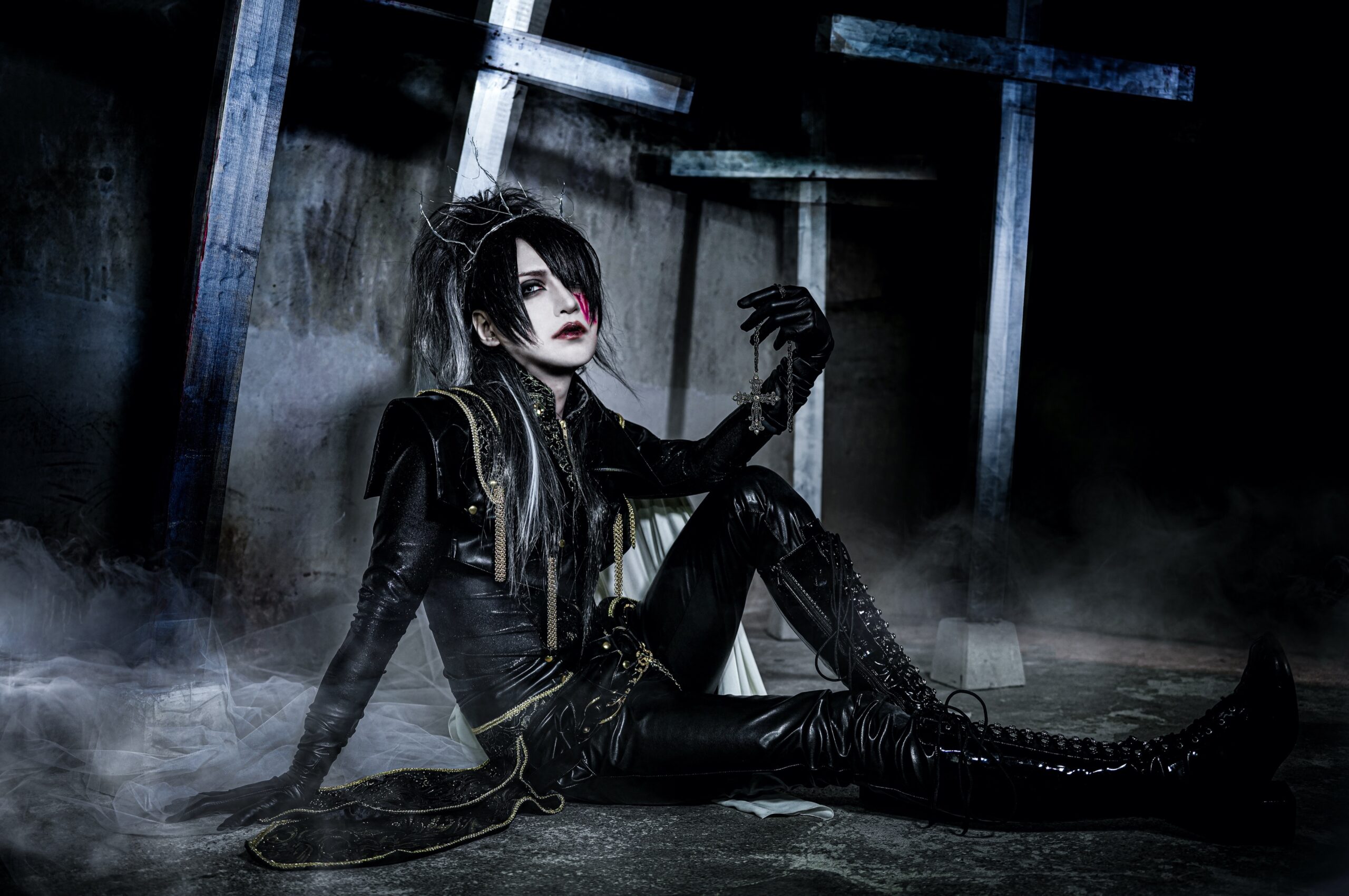 SUI ソロアーティストと一口に言っても、様々な活動スタイルがあります。ライブ活動に於いてはパーマネントなメンバーを決めて活動をするパターンもあれば、楽曲制作一つを取っても、作家さんにお願いをし、その曲たちを表現しているアーティストもいます。今回集まった3人は、みずから作詞・作曲・編曲を担い、明確なコンセプトや意志を持って活動をしている、いわゆるプロデューサーとしての気質や美学を持っている。つまり、それぞれが自身の描きたい世界観を責任持って表現したい力に長けていると思うんです。しかも3人とも、「ソロとして、どういう風に進んでいきたいのか」や「このシーンの中でのソロとしての位置をどう確立したいか」のヴィジョンへ共通項を覚えたし、お互いに活動へのシンパシーを感じていたことから「一緒に面白いことを仕掛けよう」と手を組んだ形でした。同時に、各々が掲げ持つソロとしての存在理由や意義を世の中へ明確に打ち出すことで個々の認知を上げ、ヴィジュアル系というシーンの中、ソロアーティストとしての活躍の場をさらに広げたい思いもありました。