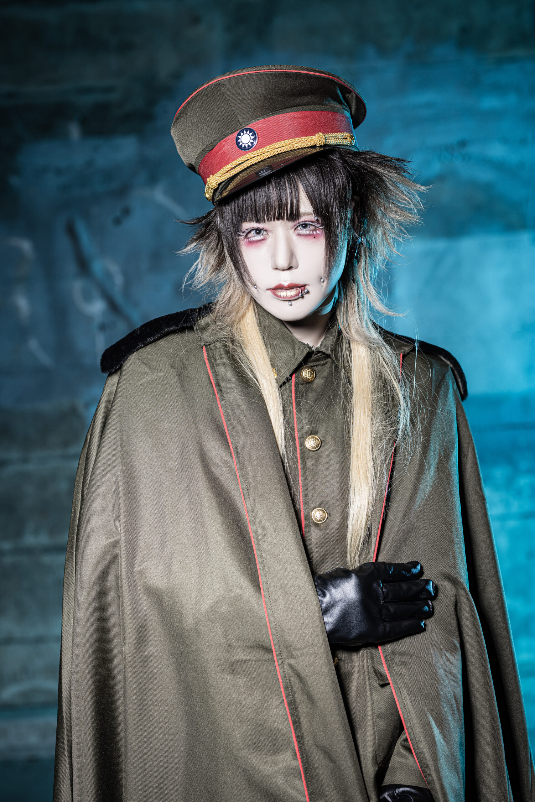 毎回、衝撃的なヴィジュアル姿を示すミスイ。前回は始動初期からのメインアイコンとも言える、”首吊り”を模倣。今回は、混迷する現代へ継承を鳴らすように、”軍服”姿を提示。この衣装は、”8月限定”。この時期を逃すと、今回の姿を目の前で見れる機会を永遠に?失ってしまう。ぜひ、ライブに足を運び、軍服姿をしっかり目に焼き付けてほしい。