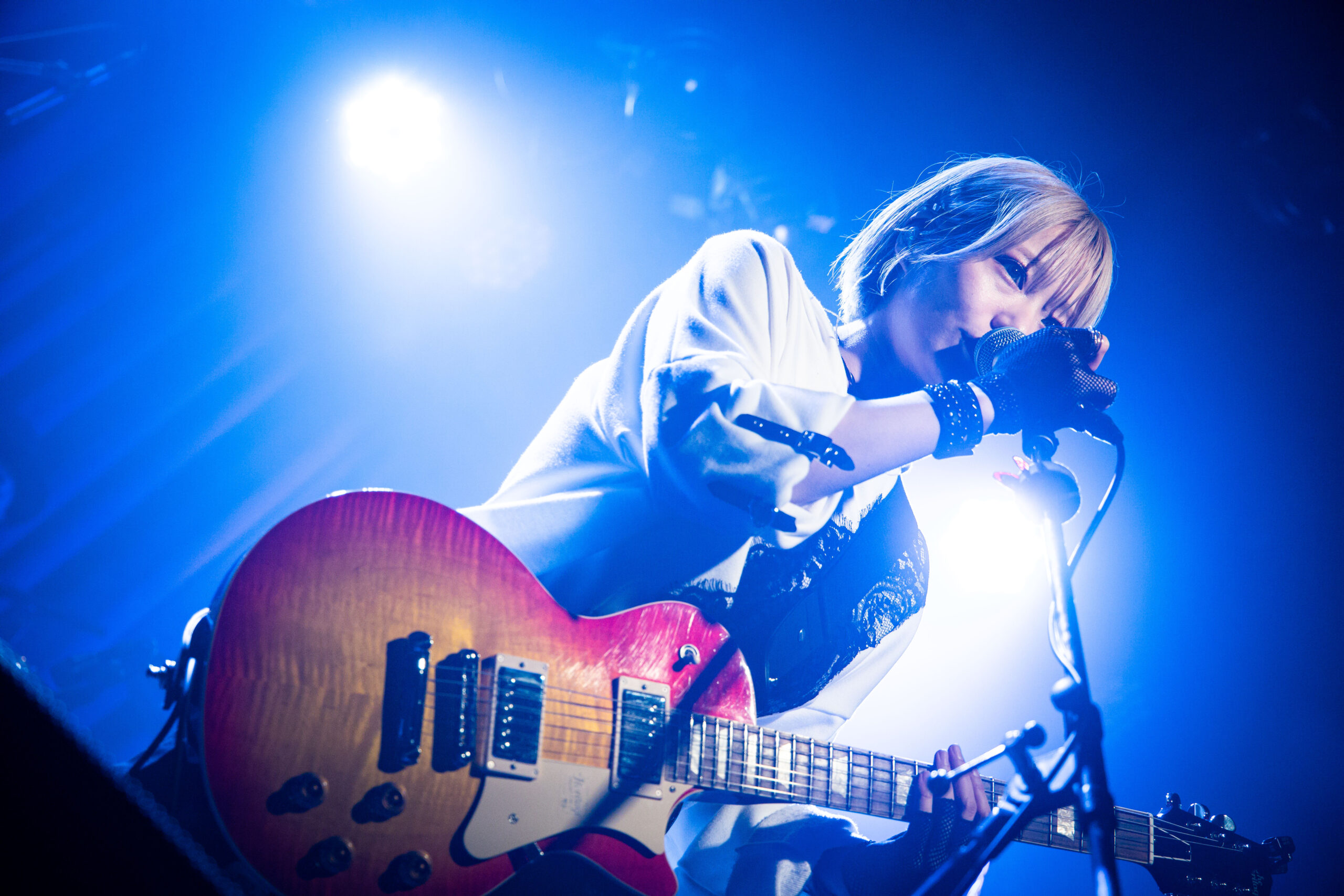 em:ライブ中のギターソロでサポートギタリストの久保さんとハモるところがあるんですけど、そこなんかリハの時にドラムの石川さん が立ち上がってまで見てきて(笑)