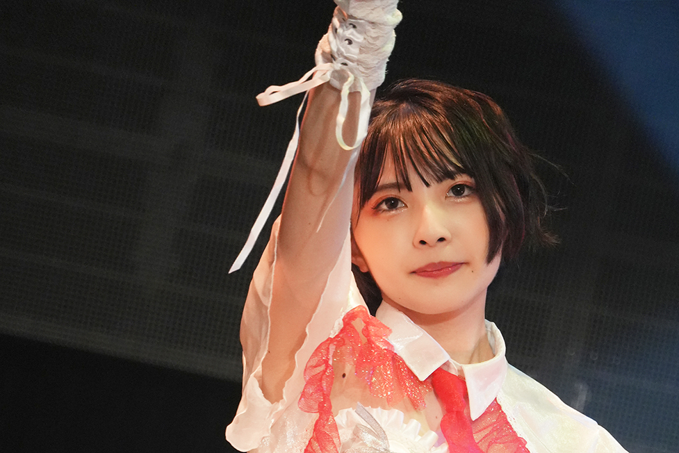 「わたしはずっとアイドルになるのが夢で、これが最初で最後のチャンスと思って受けたのが、このオーディションでした。わたしは、すべてが未経験。オーディション中は、夢だったものが絶対叶えたい目標になれば、合格もしてないうちからライブのMCの練習をしていました。このオーディションに受かり、そこからガラッとは自分の生活が変われば、地元の宮城県から上京し、この日までたくさんの経験をしてきました。正直、厳しい状況へ陥り、このままやっていけるのか不安にもなりました。でも、この4人で前を向き続け、この日のライブに向けて毎日がむしゃらに頑張ってきました。結果、みなさんからたくさんの勇気をもらいました。これからの活動を通して、みなさんに夢と感動を与えられるように頑張りたいと思います。
