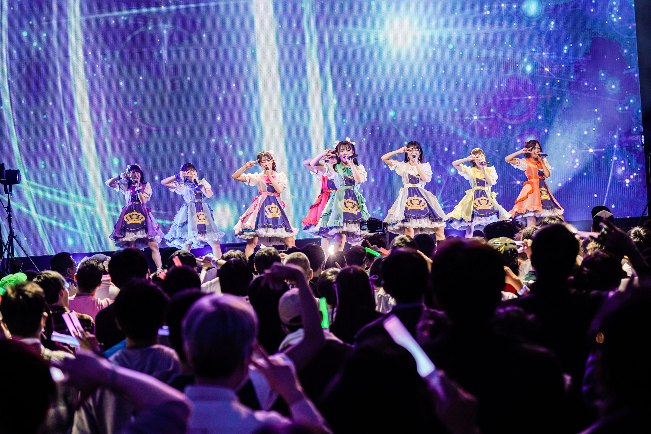 これまでの2年間を振り返るメモリアル映像の後、7人はメンバーカラーを全体に配した、それぞれデザインの違う新衣装で登場。タオル曲の「天色にI love you」が始まると、パティシエと一緒にタオルを振り回し、後半戦の始まりを告げる。