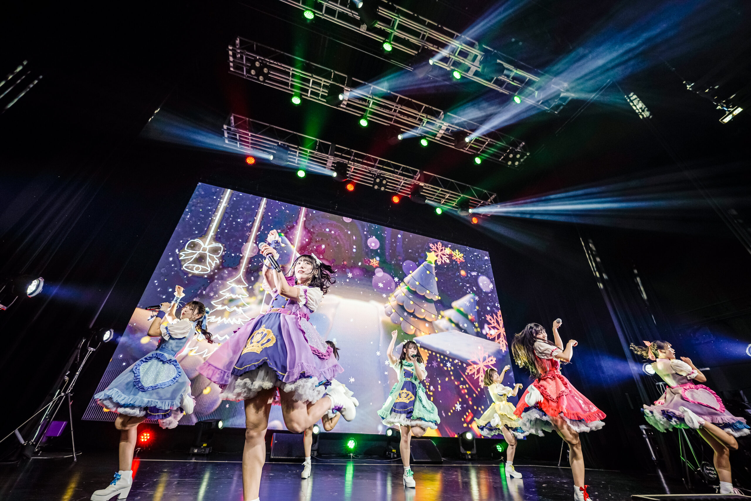 哀切なメロディーに美しいユニゾンが溶け合うせつなポップチューン「恋コガレ」、雪の結晶が舞い散る映像をバックにメンバーそれぞれが迸るような感情を歌に乗せる「さよなら流星群」、指先まで神経を行き届かせた振り付けとカラフルなフォーメーションで高揚感を演出するクリスマスソング「恋のプリンセチア」と、秋から冬にピッタリなナンバーを立て続けに披露して、ロマンティックな空間を構築する。