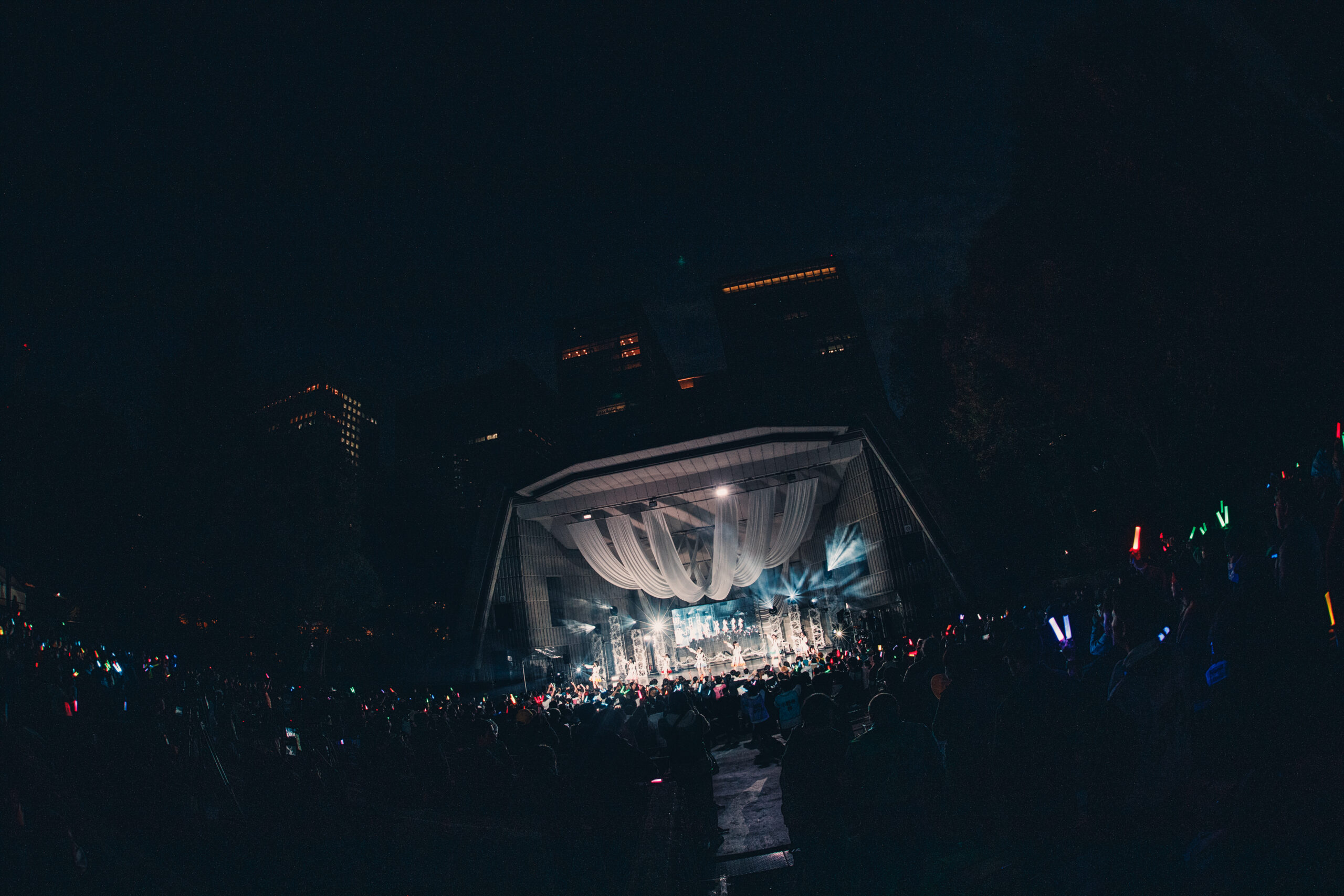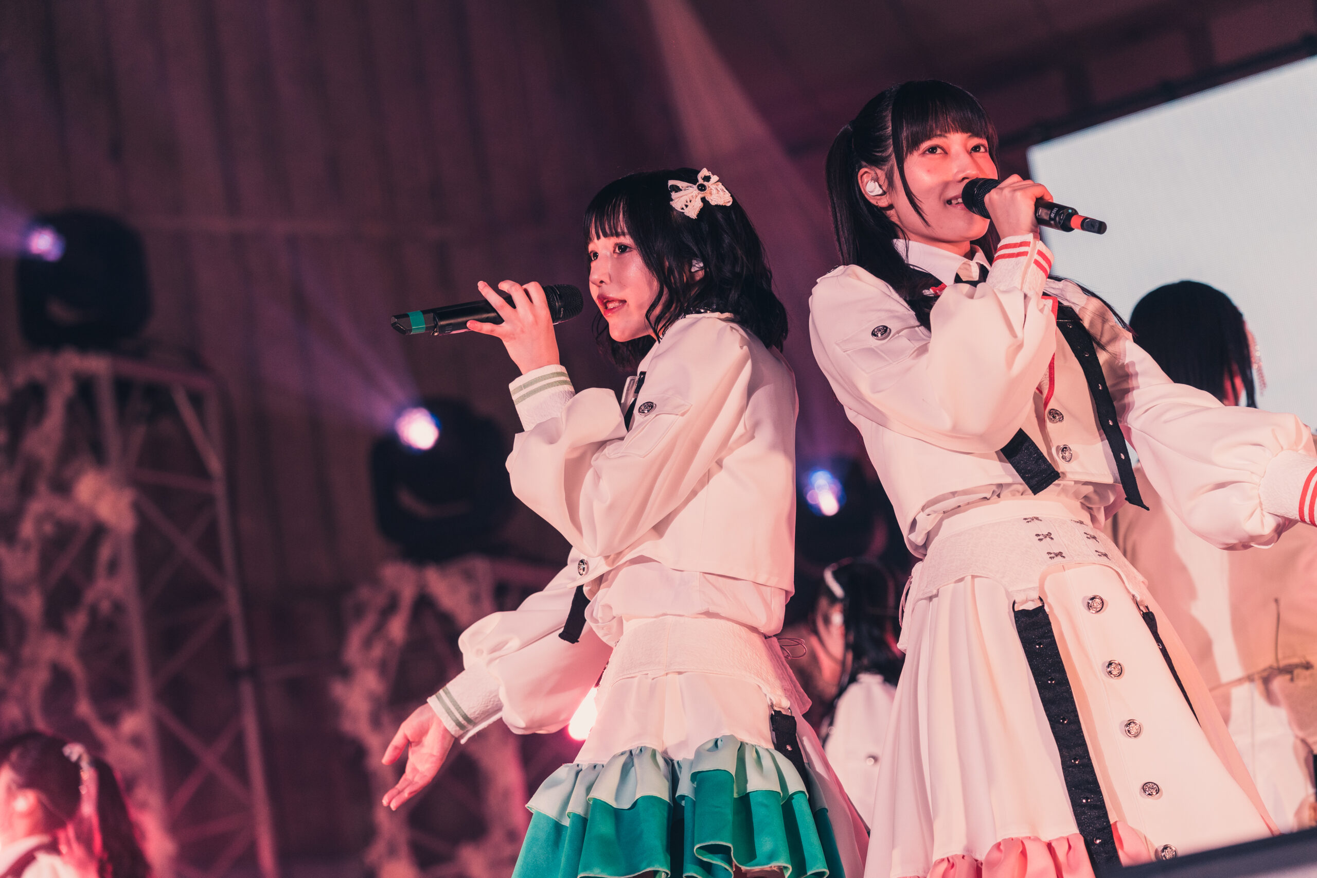 ファンと一緒に作った曲『共に描く』では未来に向かうドキドキや、希望を胸に“1人じゃない”と、背中を押される。「私たちと歌いましょー!」と三浦菜々子が投げかけると、ファンとメンバー7人の声が野外に響き渡った。