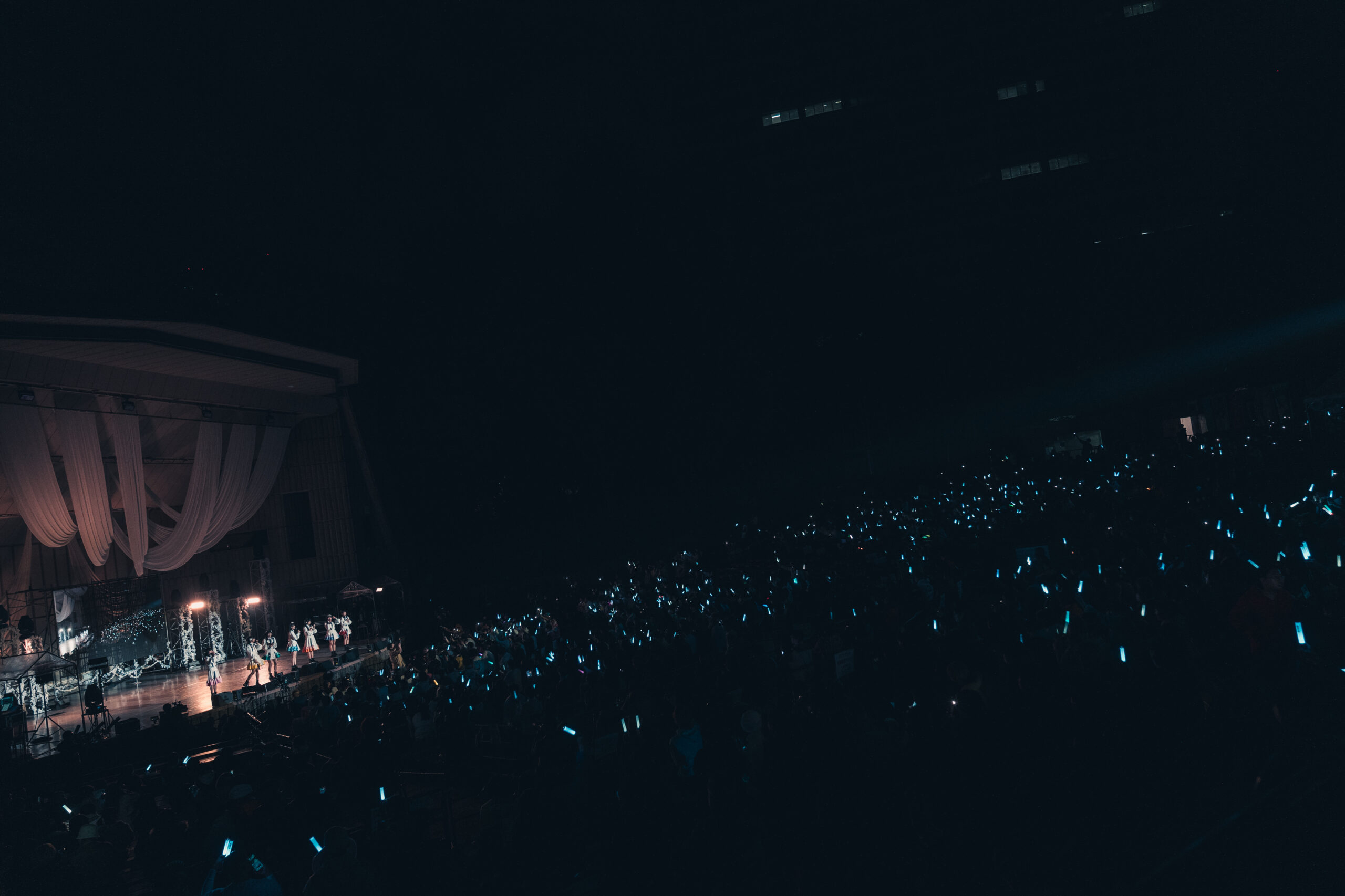 MCでは西野千明が「ここまでノンストップで曲を披露してきましたがどうでしたか?」と聞くと「最高!!!」とファンからは声が上がりさっそく後半戦へ突入。ペンライトの色を白に変え、この季節にぴったりのウインターソング『光になって』が始まると、やわらかい7人の歌声とイルミネーションの様な光の輝く客席に雪が降る演出がされロマンティックな雰囲気に会場が包まれた