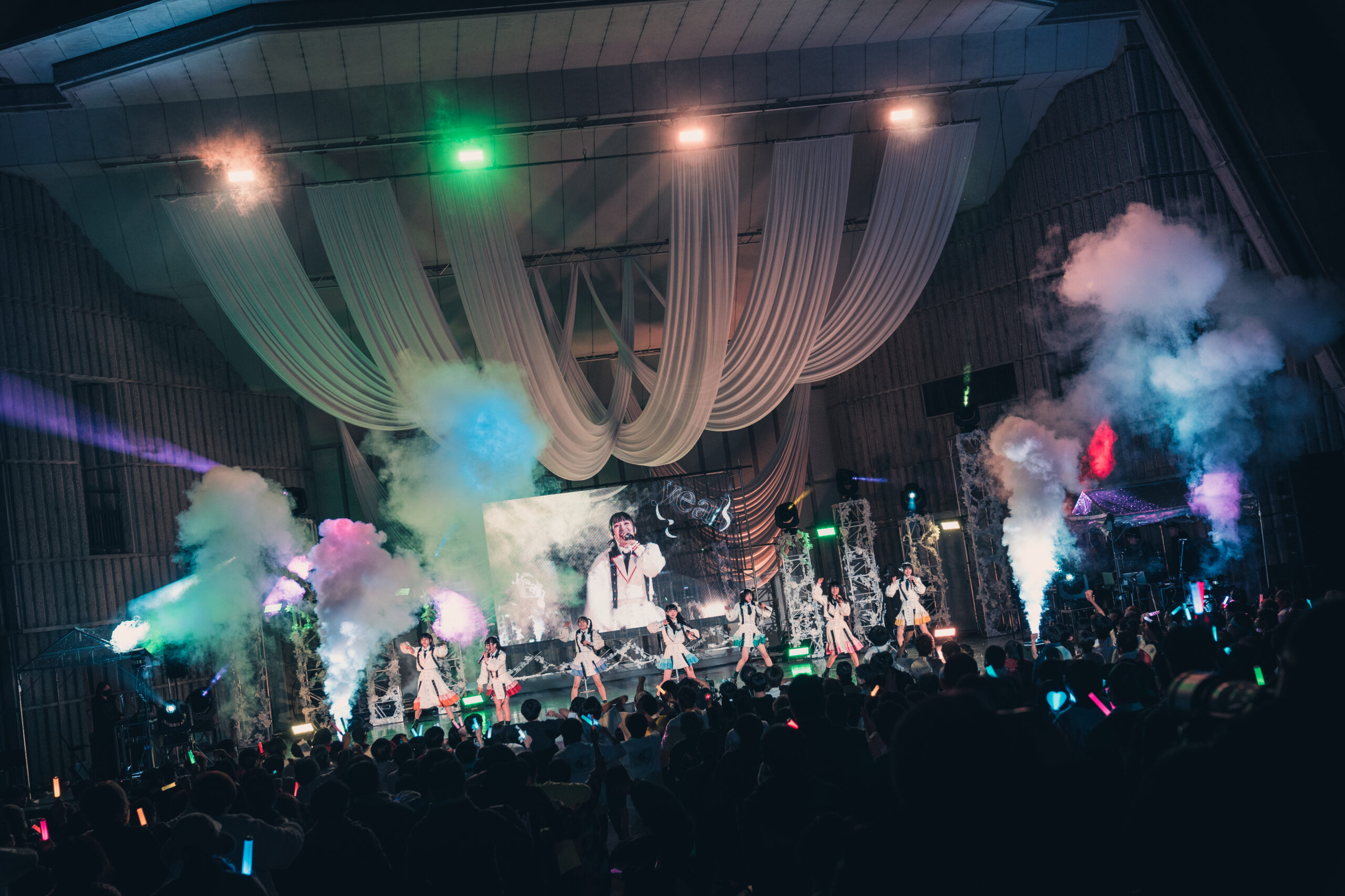 同公演では、活動休止中の橋本美桜も復帰し、久しぶりの7人でのステージとなり、映像と共に1人ずつ登場したメンバー。7人が揃うと大声援があがり1曲目の『アイデンティティ』でライブが始まると、『白祭』『ポイポイパッ』を披露し、ファンと一体感を作り上げ、4曲目の『Heroism』では可愛らしさの中にも強さがあるパフォーマンスを披露し、曲中では自己紹介をはさみ盛り上げた。