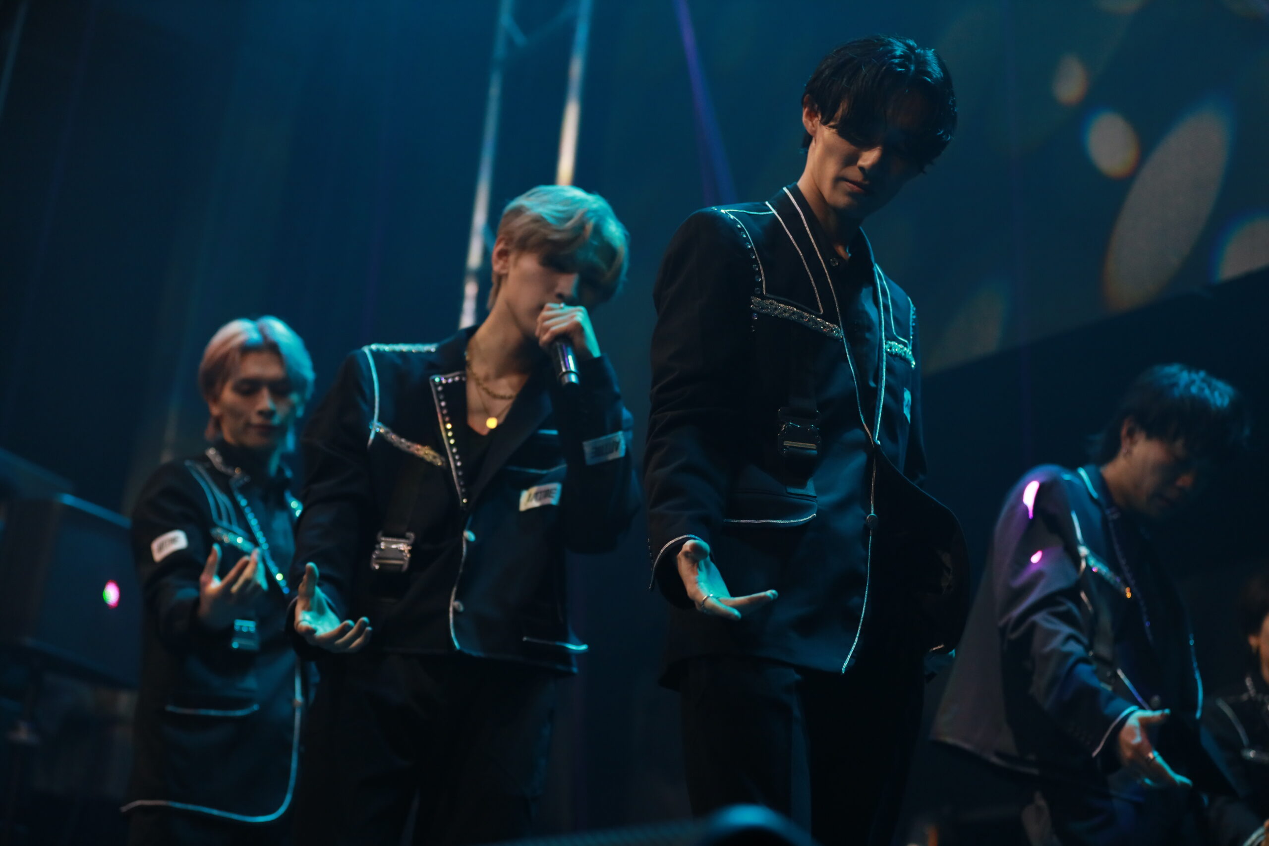 流れだした新曲『HEATUP』のリズムにあわせ、6人は凛々しさと甘くメロウな2つの声の色を巧みに使い分けて表現。同時に、観客たちを雄々しく攻める姿でもせまっていた。切れ味鋭くも、乱れ舞うパフォーマンスの数々を見逃したくない。気持ちを熱く押し上げる、重低音の効いた彼らのヴォイスにもっともっと心を射抜かれたい。