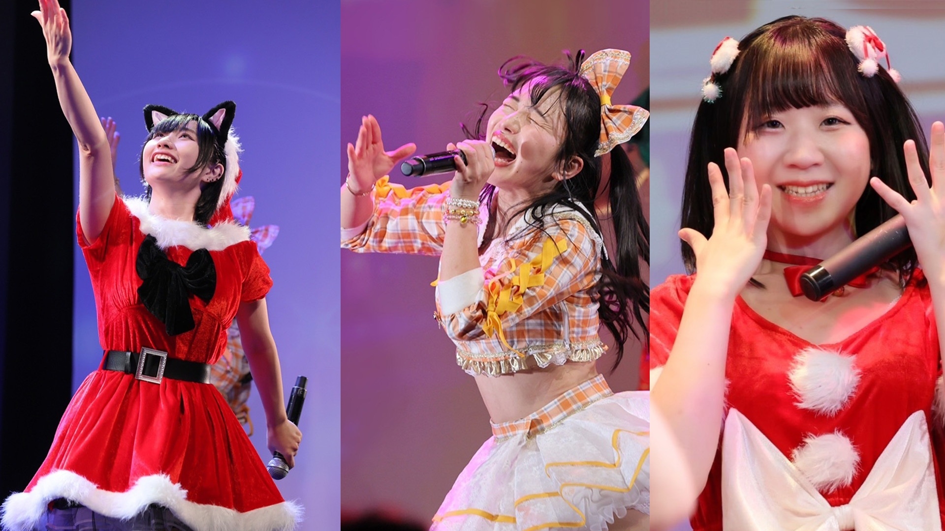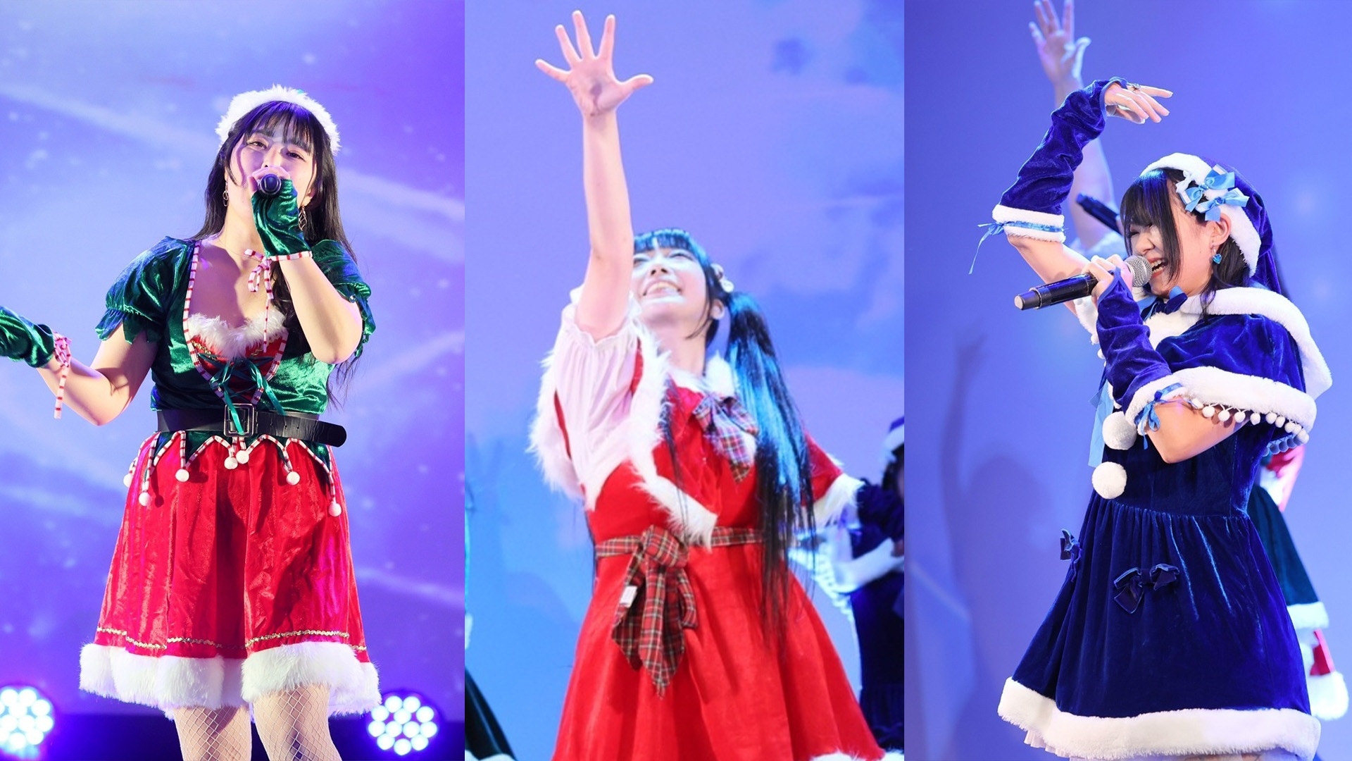 先輩’s(熊野はる・佐々木千咲子・成田麻穂・蒼音舞・仲川つむぎ)もクリスマス衣装姿で登場し、『タイムレシーバー』を「届いて」と熱唱。それぞれ形は違え、メンバーみんな比較的オーソドックスなサンタ衣装姿だったところに、先輩’sと後輩’sの違いを実感。