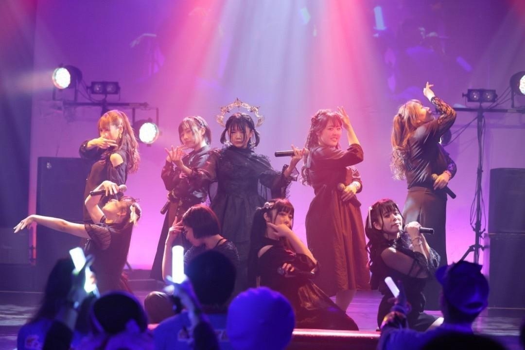高未悠加の歌声から始まった『0(zero)』では、一人一人が心の闇を解き放つように声を張り上げて歌唱。1曲ごとにメンバーたちは、揺れ動く心の様を描きだす。続く『シンデレラ・クレイム』に乗せて彼女たちは、妖しくも胸を騒がせる闇の宴をこの場に作りあげていった。