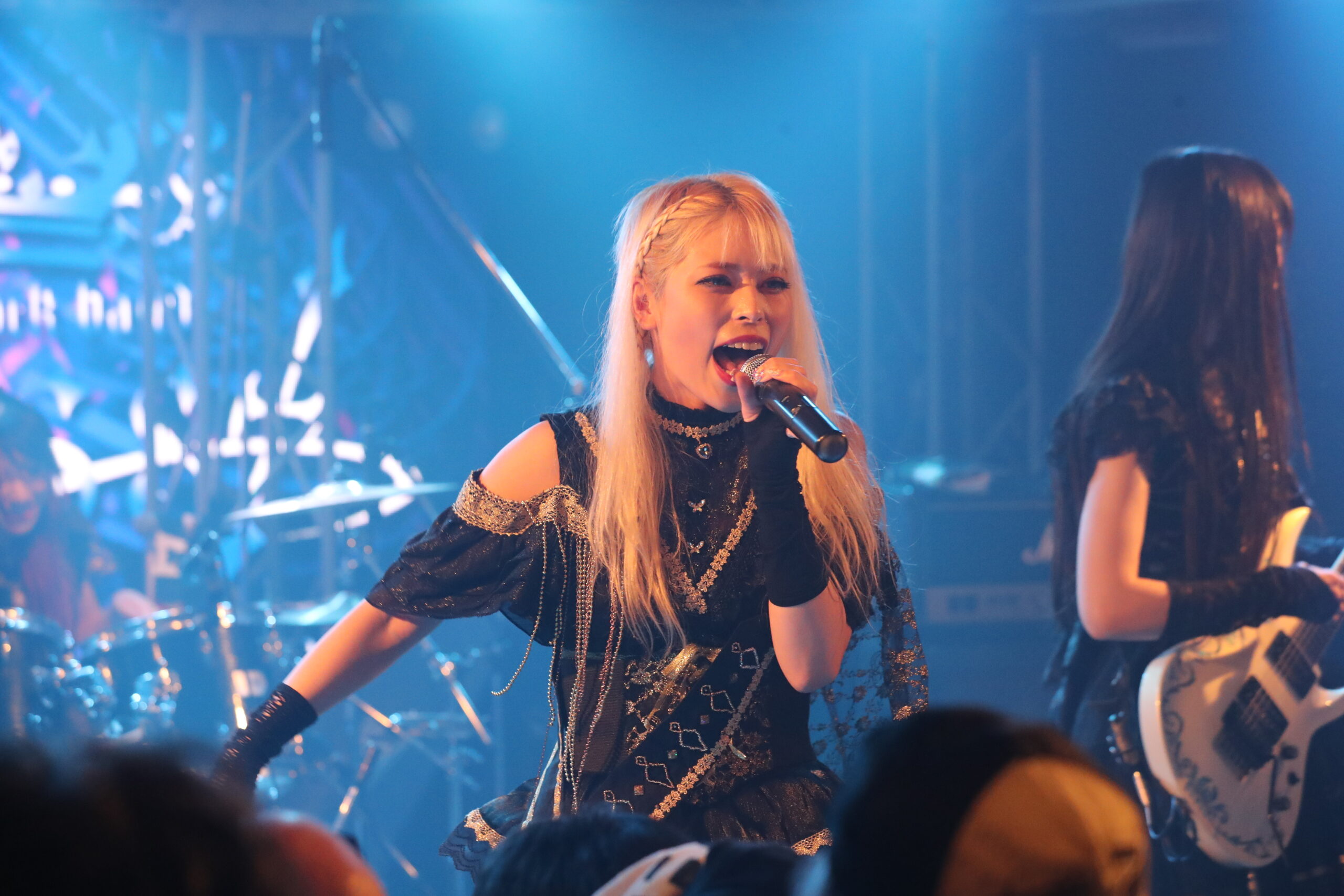 昨年の9月18日より現体制へ。翌日で5ヶ月が経つことを、LeAが笑顔で報告していた。そのうえで次に届けたのが、この日が初披露になる新曲の『Brand new stage』。スケール大きな、でも気持ちをアゲるエモい歌系ナンバーだ。スタジアムロック的な雄々しき存在感を放ちながらも、一緒に口ずさみたくなる美メロな表情を持った、親しみ覚える楽曲だ。この日が初披露にも関わらず、観客たちも最初からノリをつかみ、腕を振り上げ、ときに声を張り上げ、共に一体化した様を作りあげていた。大きな会場で一緒にシンガロングしたくなる、本当にエモい楽曲だ。