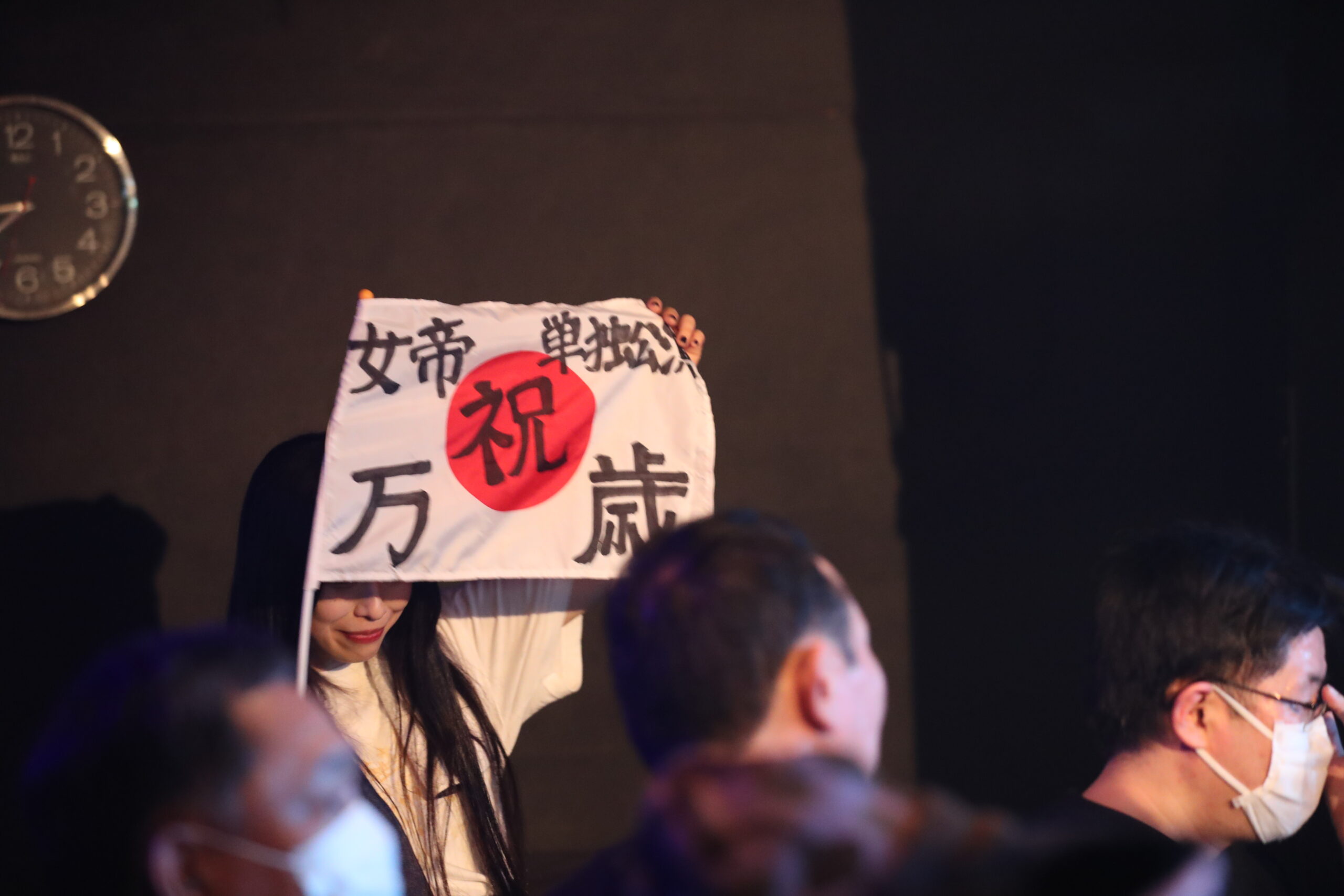 力強いバスドラムを蹴る音を合図に、楽曲は激しくも艶やかな様を見せだした。1曲ごとにEmpressは、さまざまな心模様や音の色を描きだす。『花蝶風月』で見せた妖艶で、雅な音の風に心が嬉しく騒ぎだす。艶やかな歌声に酔いながらも、存在感を放つ鋭利な音の数々に刺激を覚える。後半には、場内中の人たちが声を上げる場面も誕生。4人の作りだす一つ一つの音景色が、いろんな感情の色に変えながら心を揺さぶり続ける。