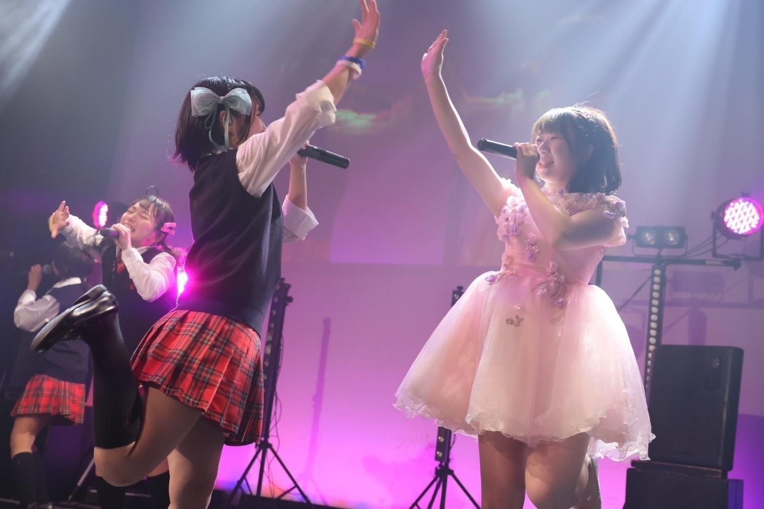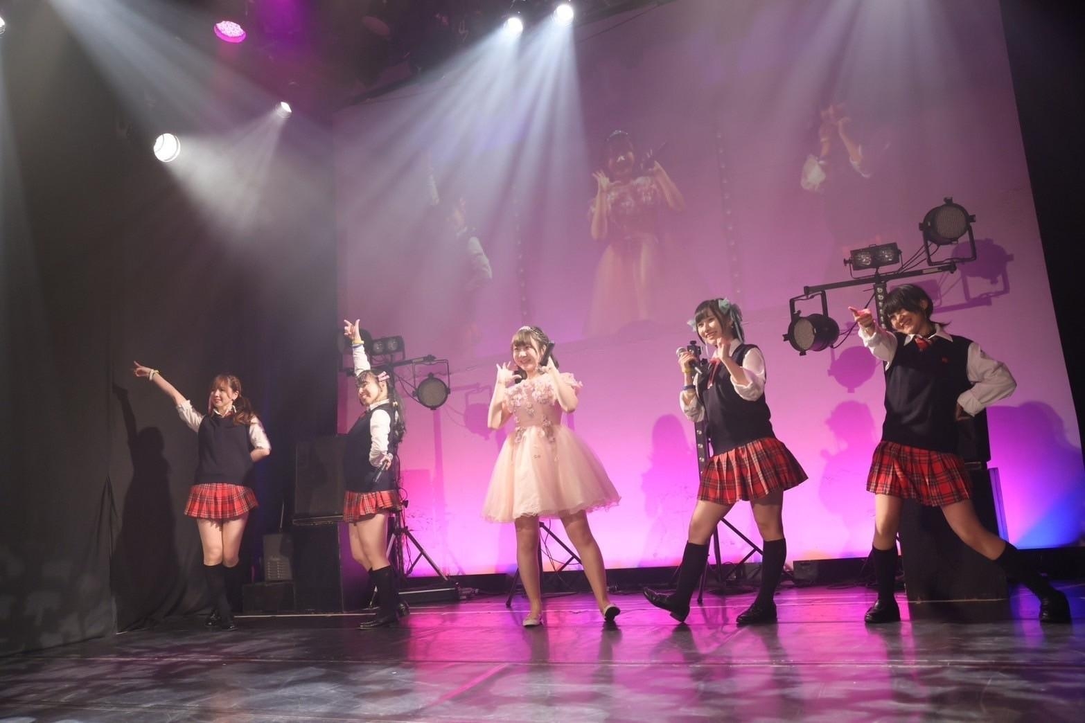 高未悠加のチャーミングな歌声から始まった『ミラクる☆妄想がーる』では、カラフルに、軽やかに弾む曲の上で、メンバーたちがときめく思いを胸いっぱいに抱え、ドキドキしながら歌っていた。彼女たちは、曲が変わるごとに、その楽曲に似合う表情に自身の気持ちの色も変えて歌唱。その表現力の高さがあるからこそ、曲が進むごとに、いろんなページをめくるように一つ一つの曲世界へ夢中になれる。さらに、先輩’s(熊野はる・佐々木千咲子・成田麻穂・蒼音舞・仲川つむぎ)による『Melodious Revolution』では、5人が凛々しい表情と気迫みなぎる姿を見せ、広報委員たちの気持ちを熱く、熱く騒がせていった。
