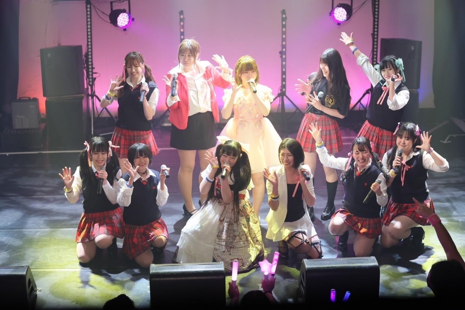 メンバー全員が、ふたたび舞台へ集結。頭にピンクのリボンをつけた熊野はるの姿も印象的だ。「みんなの大好き~聞かせてね」(成田麻穂)の言葉を合図に、後半のライブは『すき!すき!好き!!』からスタート。「君が好き」と愛らしい笑顔で歌いかけるたびに、胸がキュンと鳴る。新入生候補生の西崎琴音を含めた11人のメンバーたちの華やかなパフォーマンスに触れていると、胸のドキドキが膨らみ続ける。間奏で「みんなのことが大好きだー」と口にした青山明日香の言葉も嬉しい。