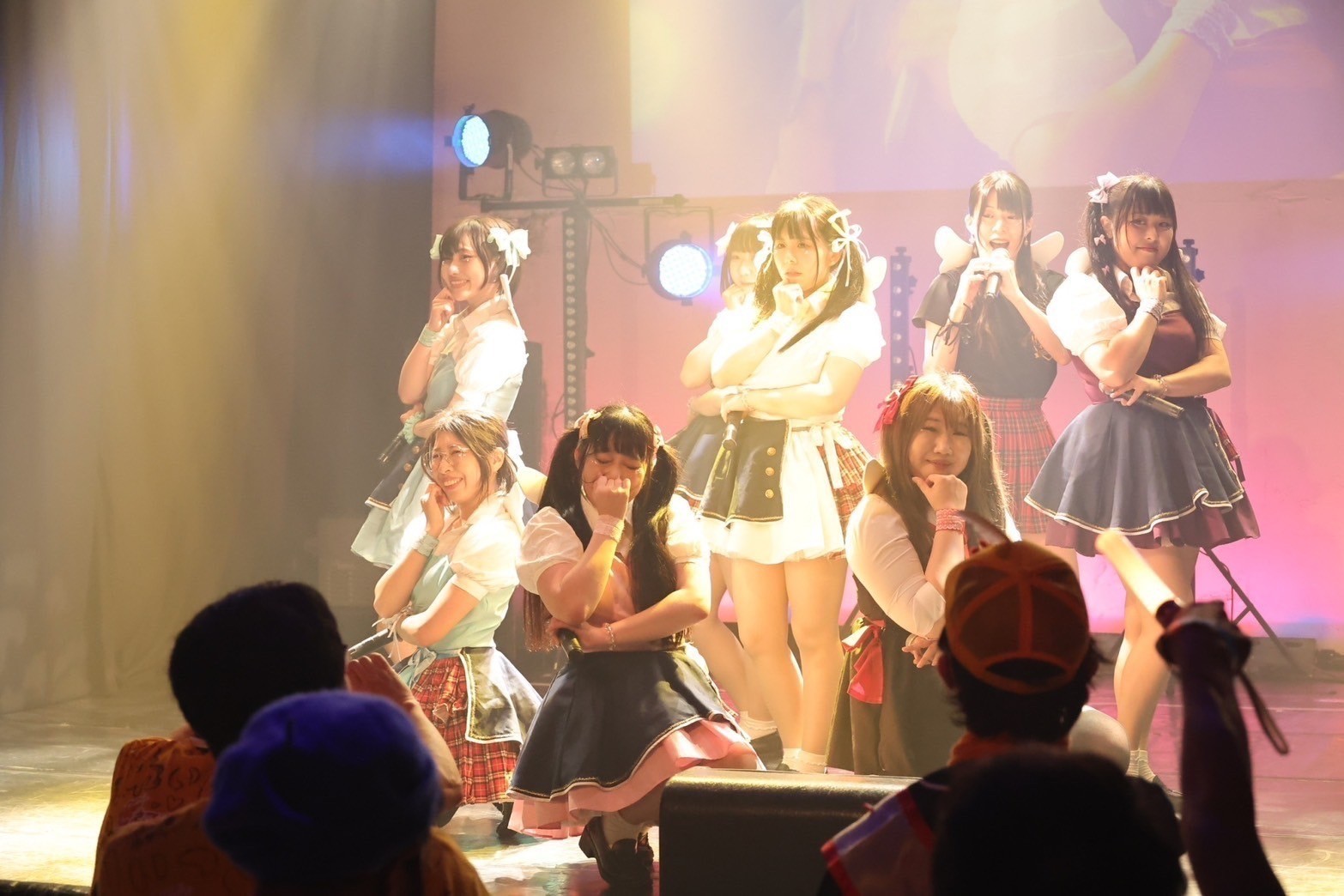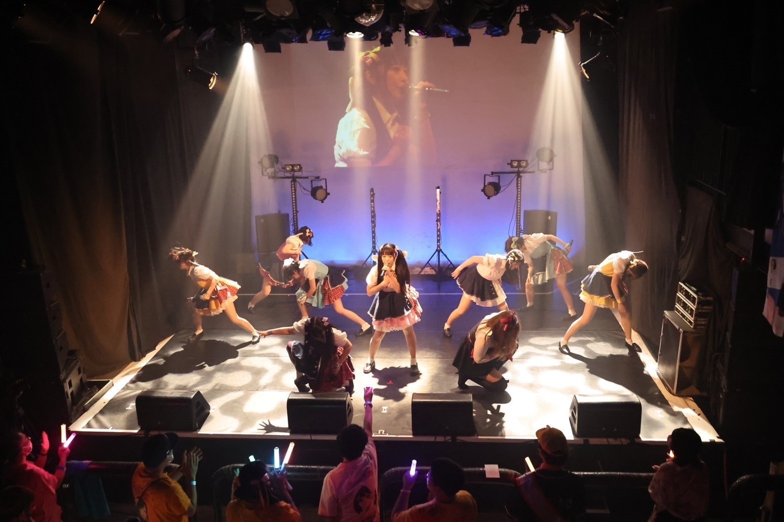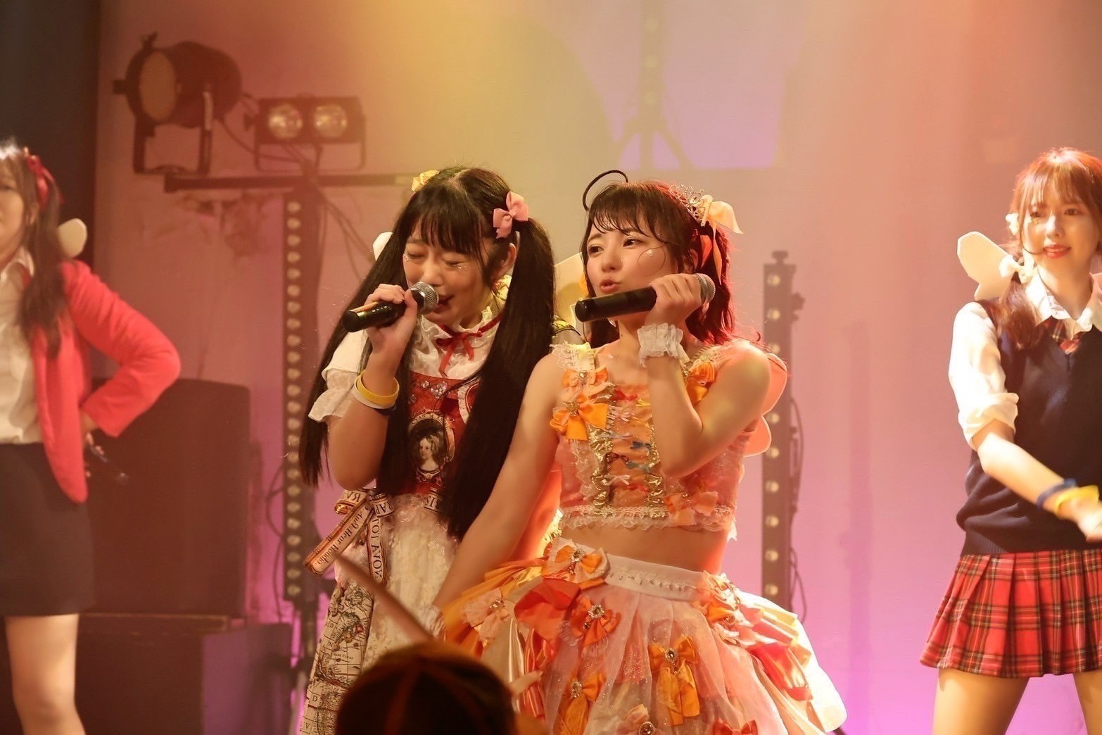 この日は、メンバー全員が髪の毛にいろんな色のリボンを、背中に天使の羽根を付けて登場。まさに、「りぼんいっぱい!天使いっぱい!」の稲森のあ生誕祭らしい姿だ。
