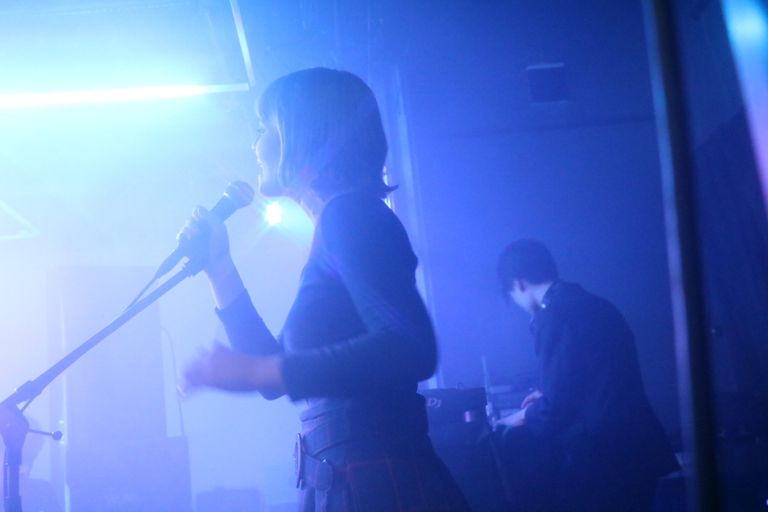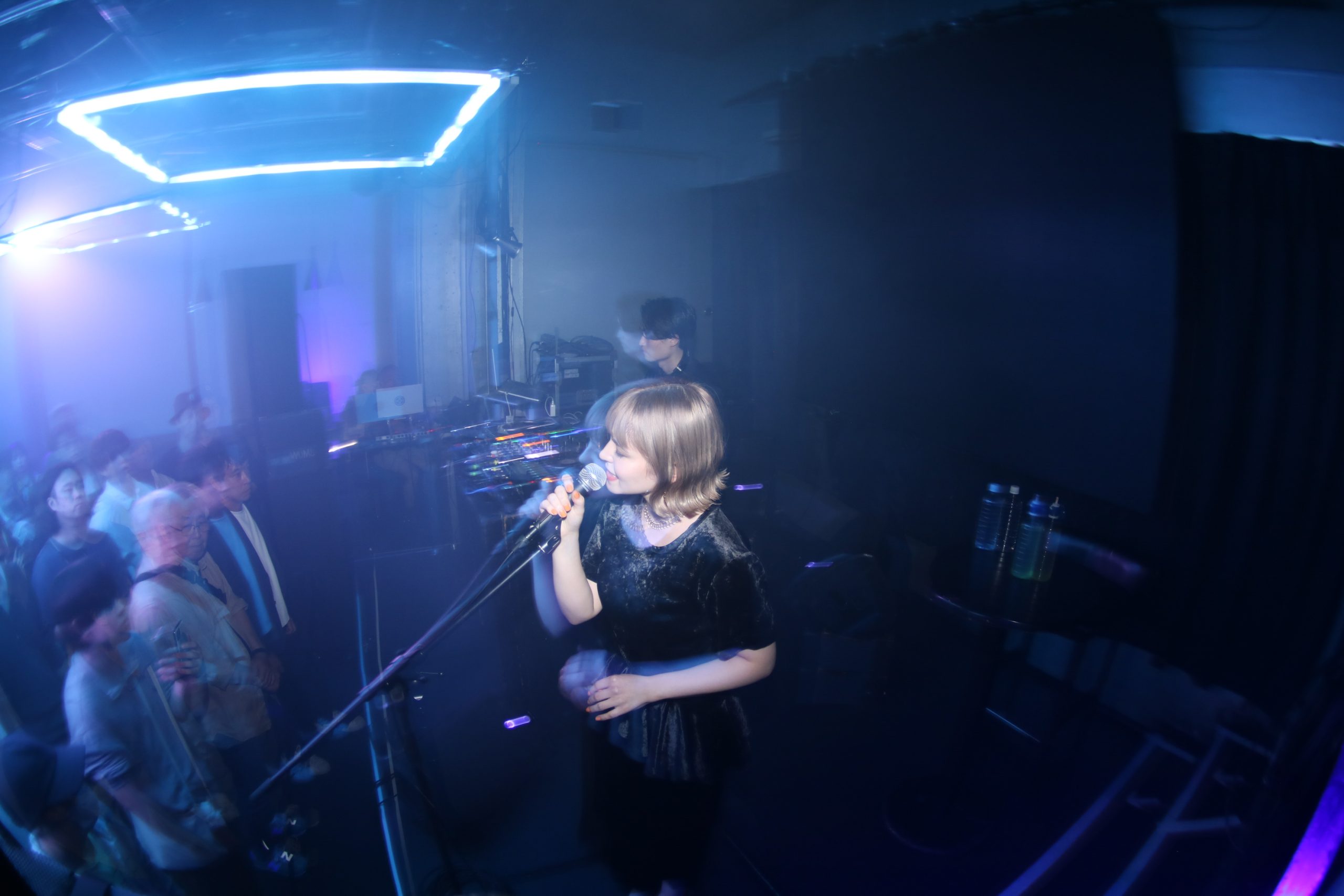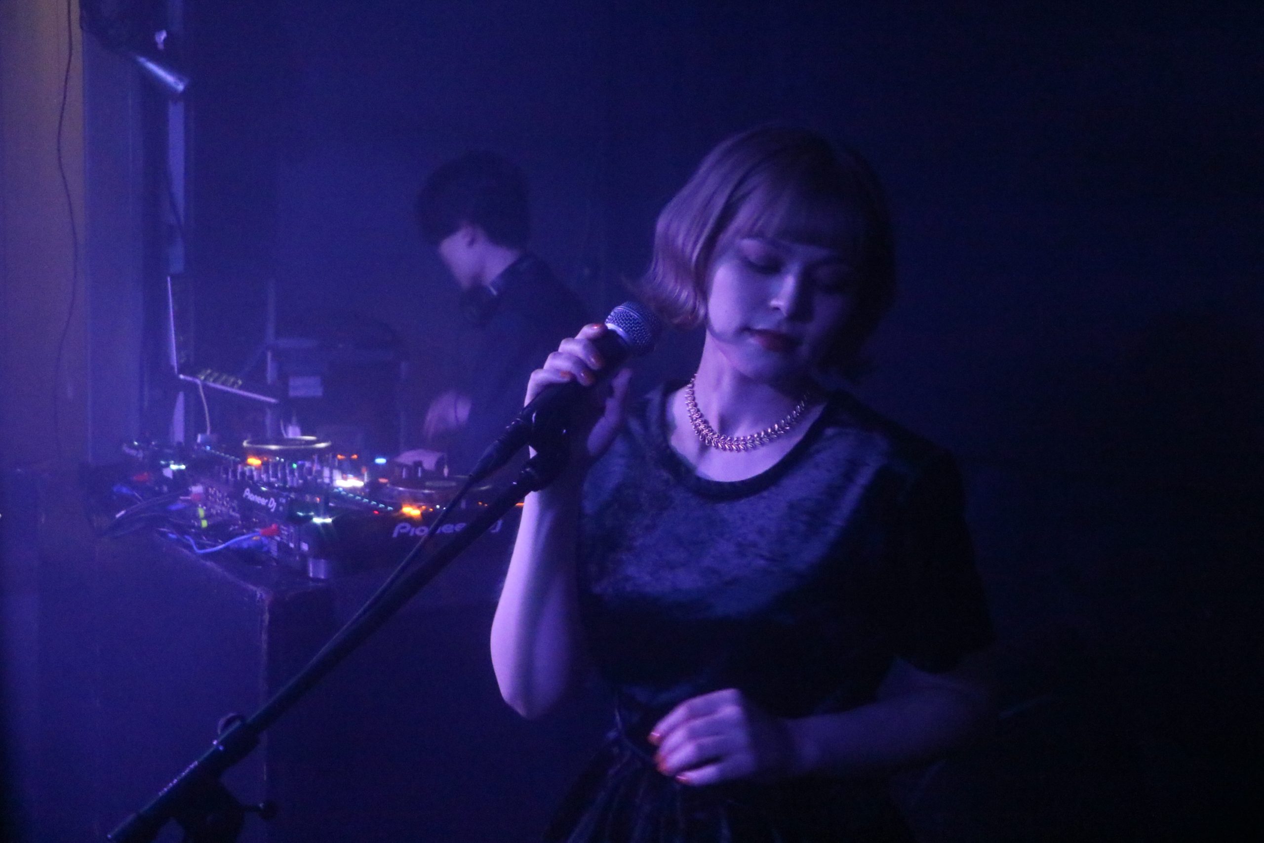 18時30分、トラックメイカーのAFAMooがステージに登場し、CDJの再生ボタンを押す。インストトラックからスタートし、3分ほど経過するとボーカルのjune-chanが登場。1曲目はJungleビートに美しいピアノを組み合わせた楽曲〈Foreigner〉で、開始早々オーディエンスの心を掴む。1stワンマンライブとは思えない、堂々たるパフォーマンス。会場に集まった100名のファンが、june-chanの歌唱表現と歌声に魅了されていた。