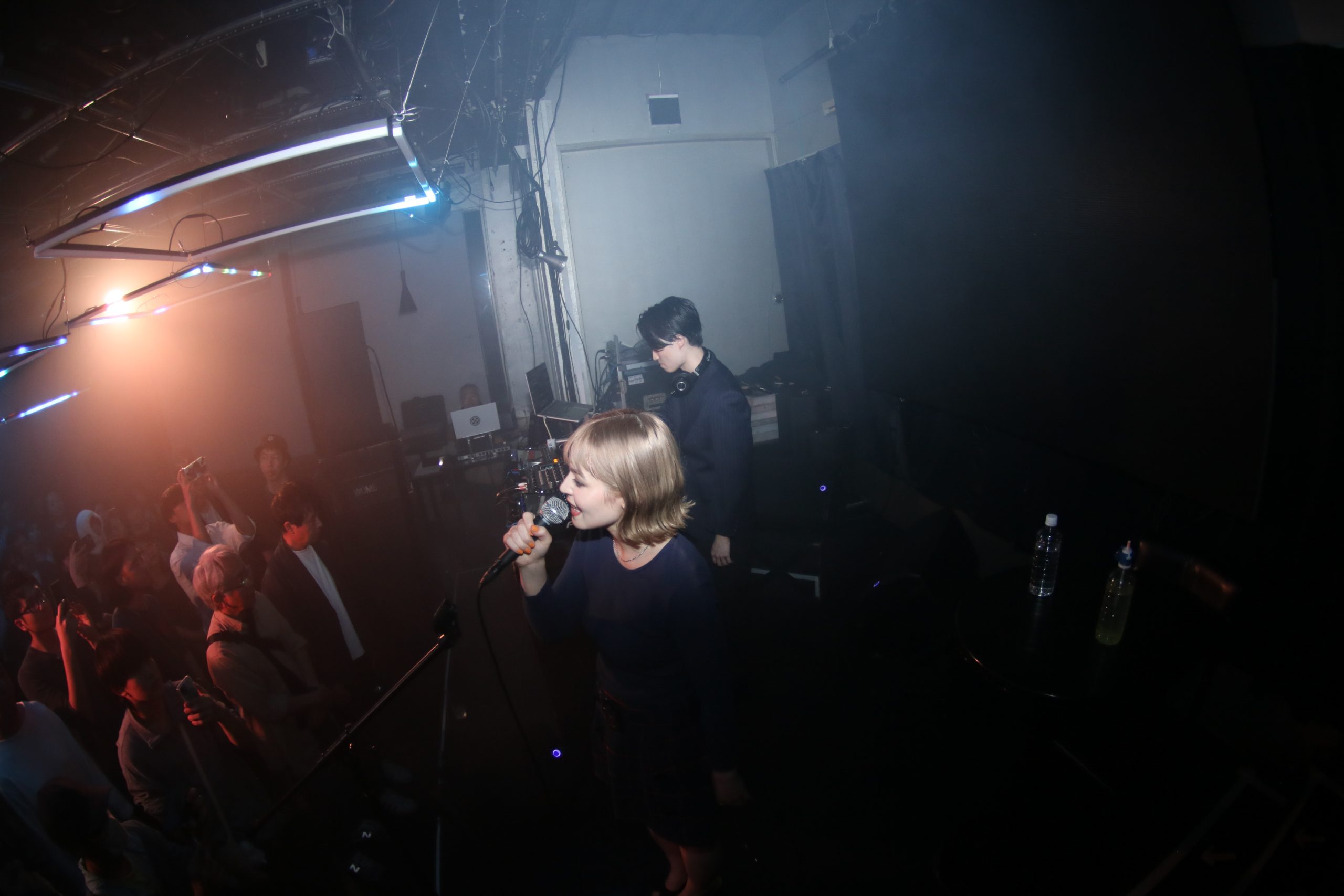 ここでUilouの2人はステージを離れる。june-chanの声をカットアップした遅いビートが鳴り響き、数分経過するとAFAMooが登場。ドラムパッドを活用したビートパフォーマンスを披露し、会場を静かに盛り上げる。ビートパフォーマンスが終わると、衣装チェンジしたjune-chanが登場し、ライブパフォーマンスを再開する。