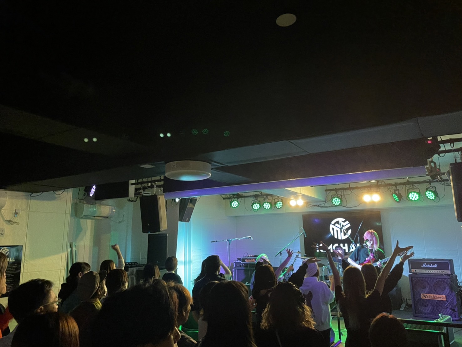彼らはけっして勢いを持った演奏を止めることはない。それどころか、曲を重ねるごとに演奏に痛い衝撃と熱を加え、観客たちから理性を奪い取る。『scolding』でも狂太郎の煽りに刺激を受け、大勢の人たちか拳を高く突き上げ、その場で飛び跳ねながら荒ぶる声をぶつけていた。狂太郎とイザナが台の上で煽れば、途中には、観客たちが身体を激しく折り畳む様も誕生。イザナのヒステリカルなギターの旋律の数々や、真悠の唸るベースの音が気持ちを騒がせる。