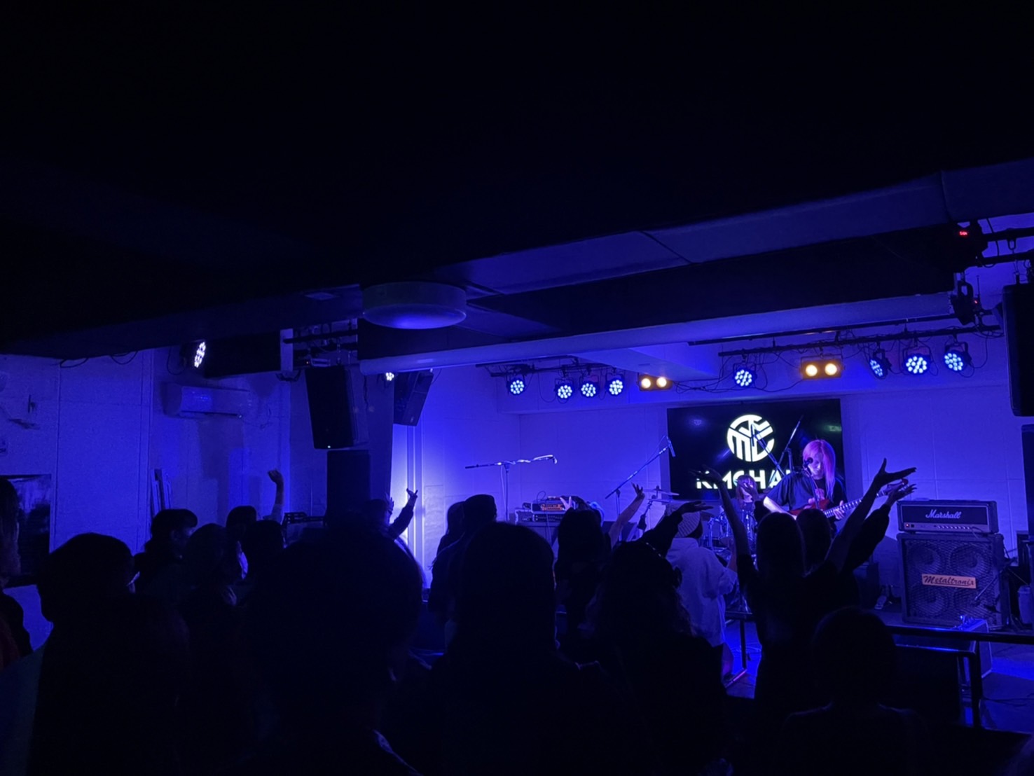 真悠の唸るべースを合図に、『Behind you.』でも観客たちが左右に躍れば、その場でくるくる回りだす。気持ちを熱く煽る歌声や演奏だ。台の上に立って歌い煽る狂太郎が、この場を狂った宴の場へ導き続ける。激しく挑発するイザナのギターソロも印象的だ。カエデと真悠の作りだす毒々しいダンスビートに乗せ、ずっと飛び跳ねていたい。止まることを阻止する狂太郎の歌声が、身体を揺さぶり続けていた。