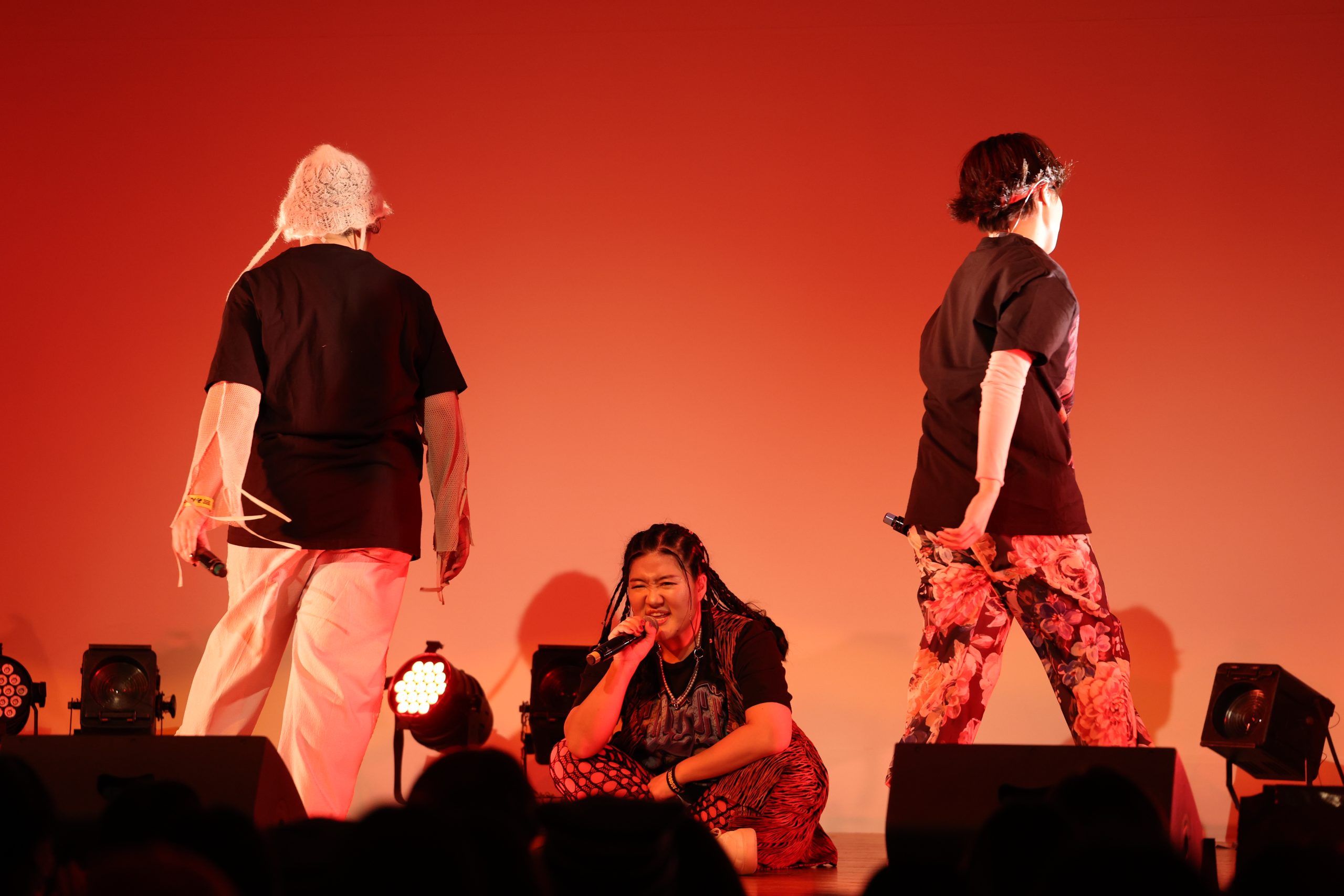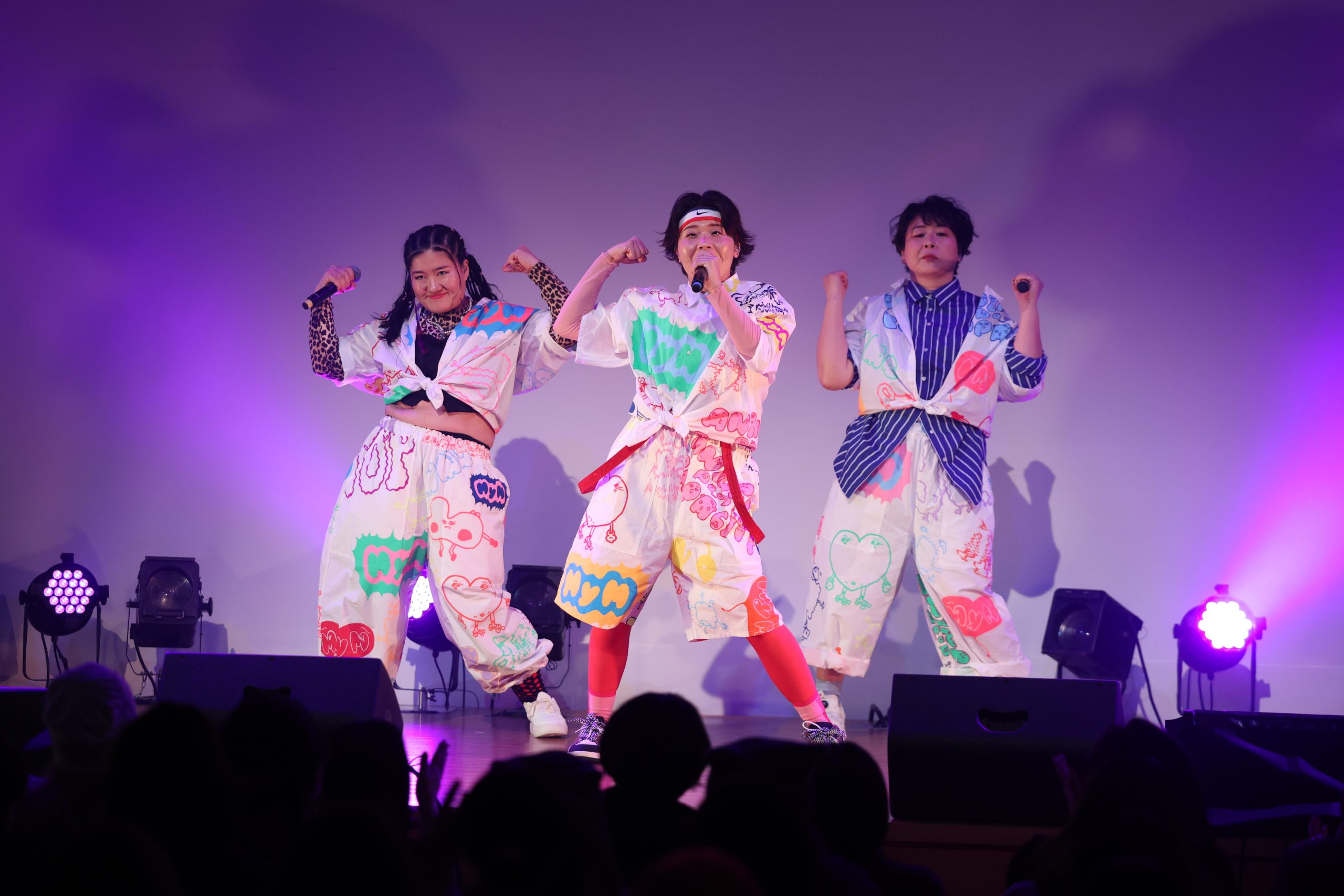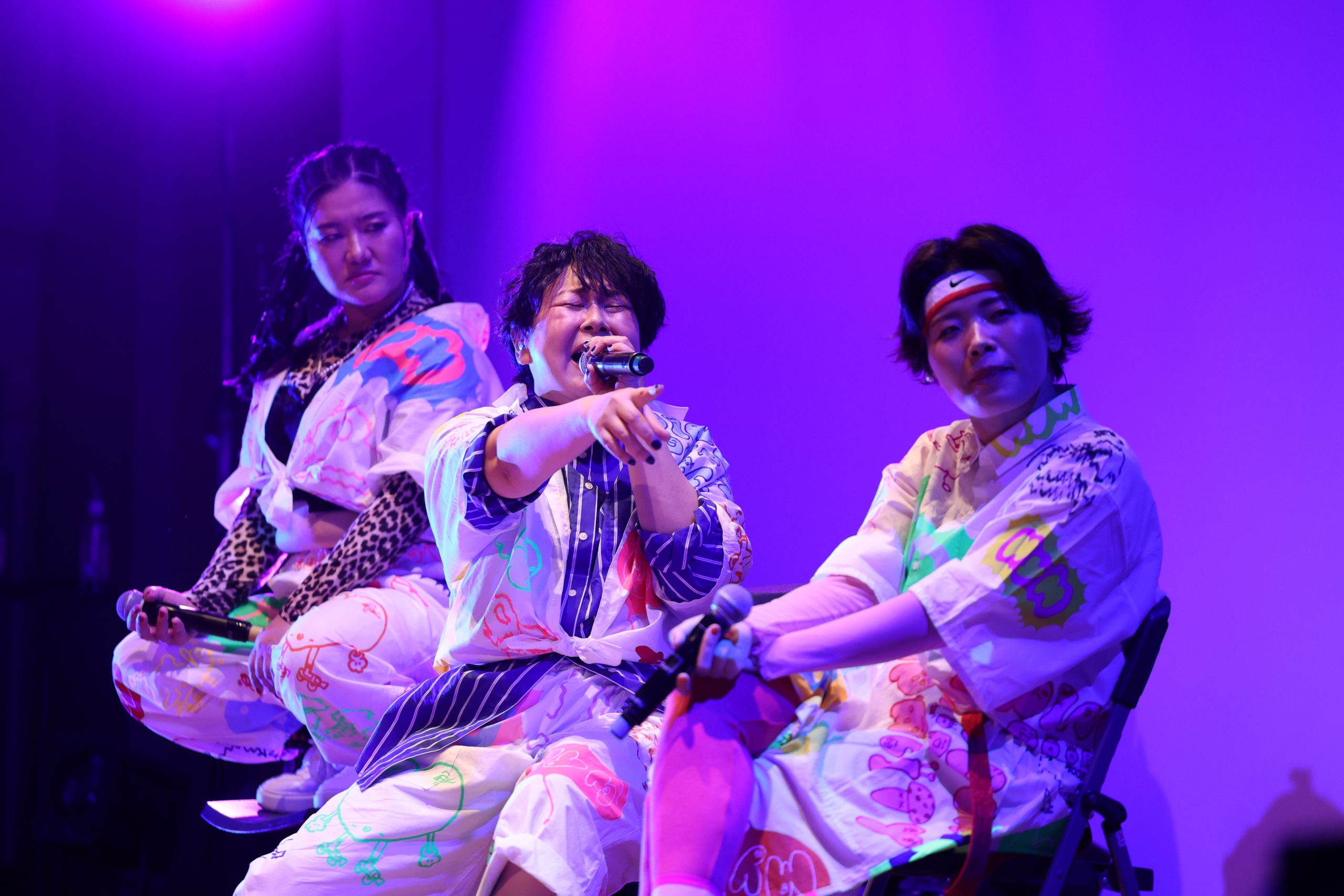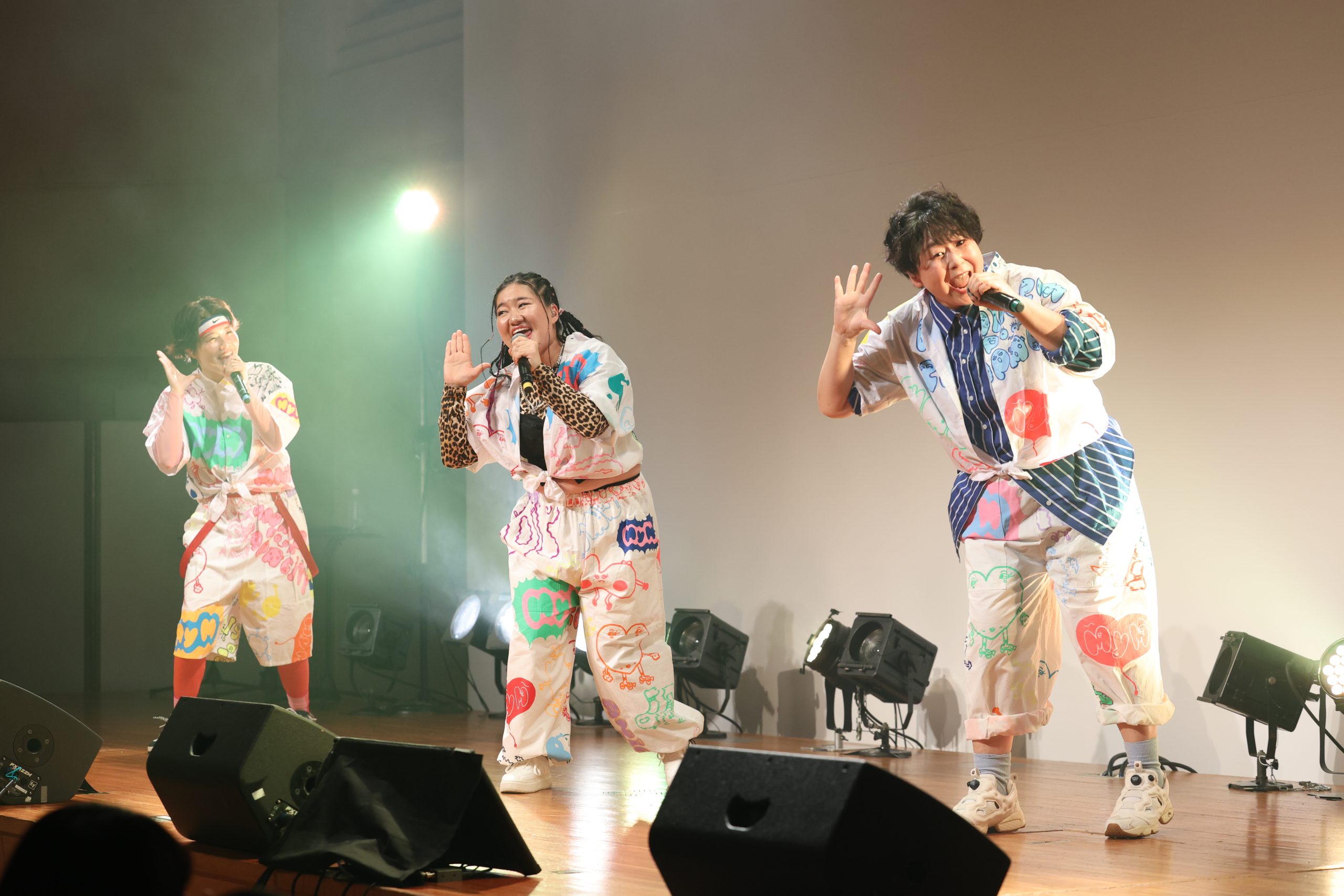 2公演完売している満員の観客たちで埋め尽くされた、場内。イベントは、デビュー曲『ASOBOZE』を歌い、スタート。彼女たちが「ASOBOZE ASOBOZE」とお馴染みのラップを繰り出すのと同時に、満員の観客たちが騒ぎだした。軽やかにライムを繰り出すメンバーらに向け、場内中から熱い声が上がる。サビでは、3人と一緒に「ASOBOZE」と声を上げる人たちも。彼女たちの誘いに乗って、一緒に遊ばなきゃもったいない。