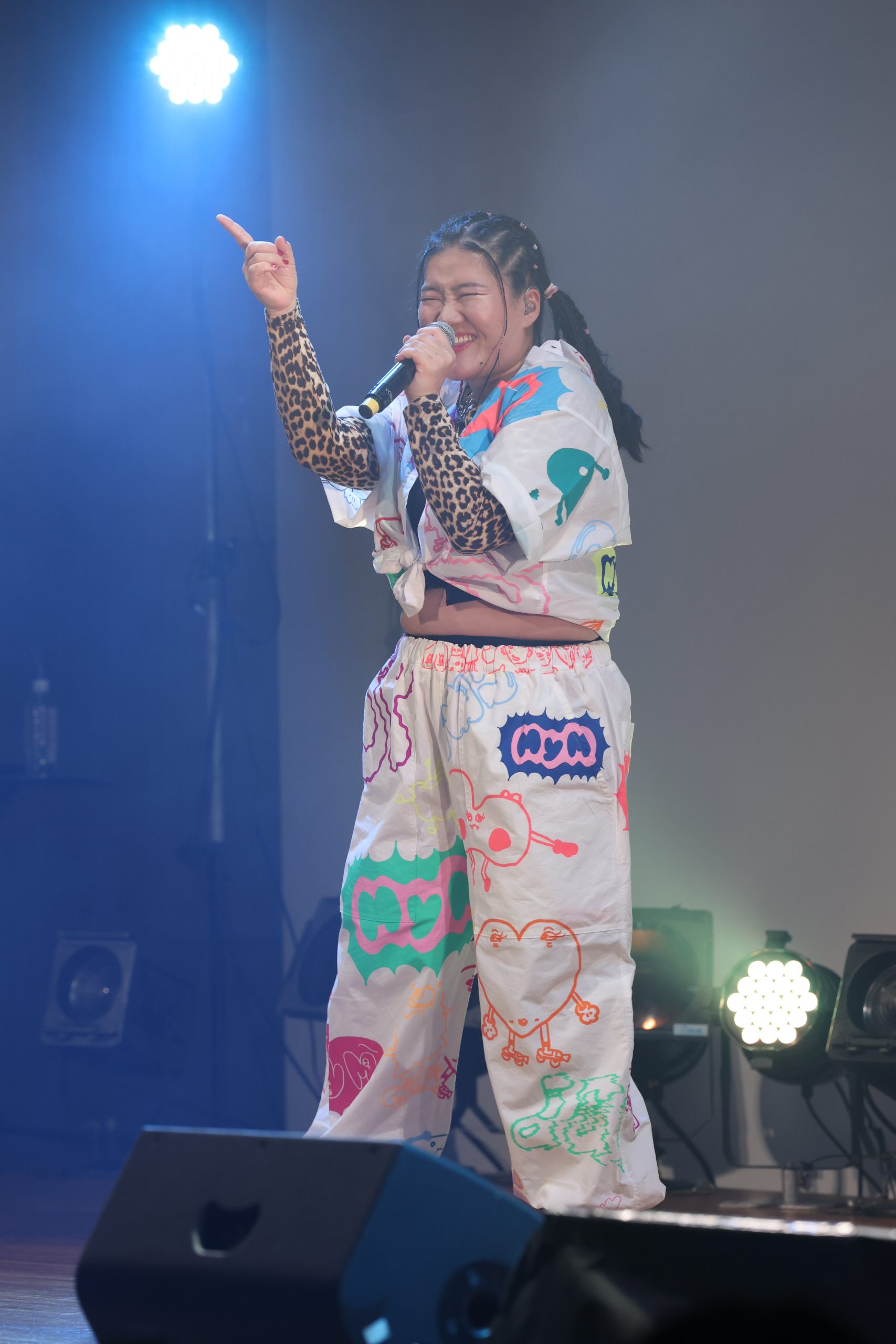 新衣裳に着替えた3人が、ふたたびステージへ。さっそく新曲の『超NAMAIKI』を歌唱。Mahiruの早口のラップや、Miyukiのハイトーンヴォイスの魅力を存分に味わえるのが嬉しい。ノリ良くリズミカルな曲調だけあって、AnM(アンマー)たちもクラップをしながら参加。最初はクールにせまりながらも、曲が進むごとに3人の感情のボルテージも上がり、観客たちをしっかり挑発していた。中でもMiyukiのハイトーンヴォイスには、AnM(アンマー)たちも大興奮。この曲、「NAMAIKI」「超」とメンバーたちとAnM(アンマー)のみんなで掛け合いながら盛り上がれる内容。今後披露する機会があったら、ぜひ声を掛け合い、楽しんでほしい。
