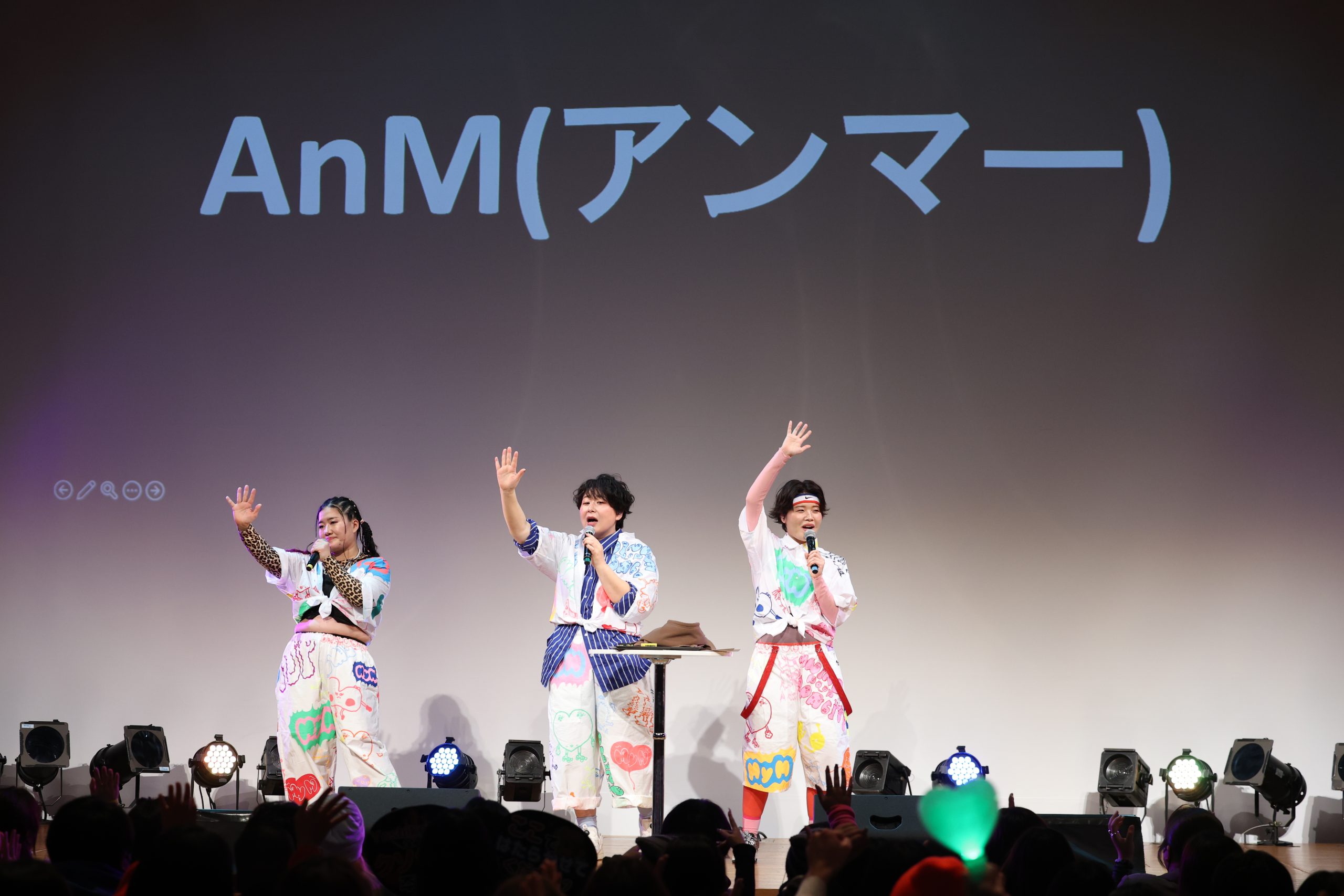 ここで、「MyMのファンネーム」の嬉しい発表が。メンバーみずから効果音を担当。3人が付けたファンネームが、「AnM(アンマー)」。「AnM(アンマー)とは沖縄の言葉でお母さん。まだ誕生から1年も経ってないグループ。だから、あなた達が母として育ててください。飯食べさせてください」と、ファンたちに育ててほしい思いから名付けたとYoshikoが語っていた。さらに「アンドミー。あなたとわたしでやっていきたい」思いも、この名前には込められている。