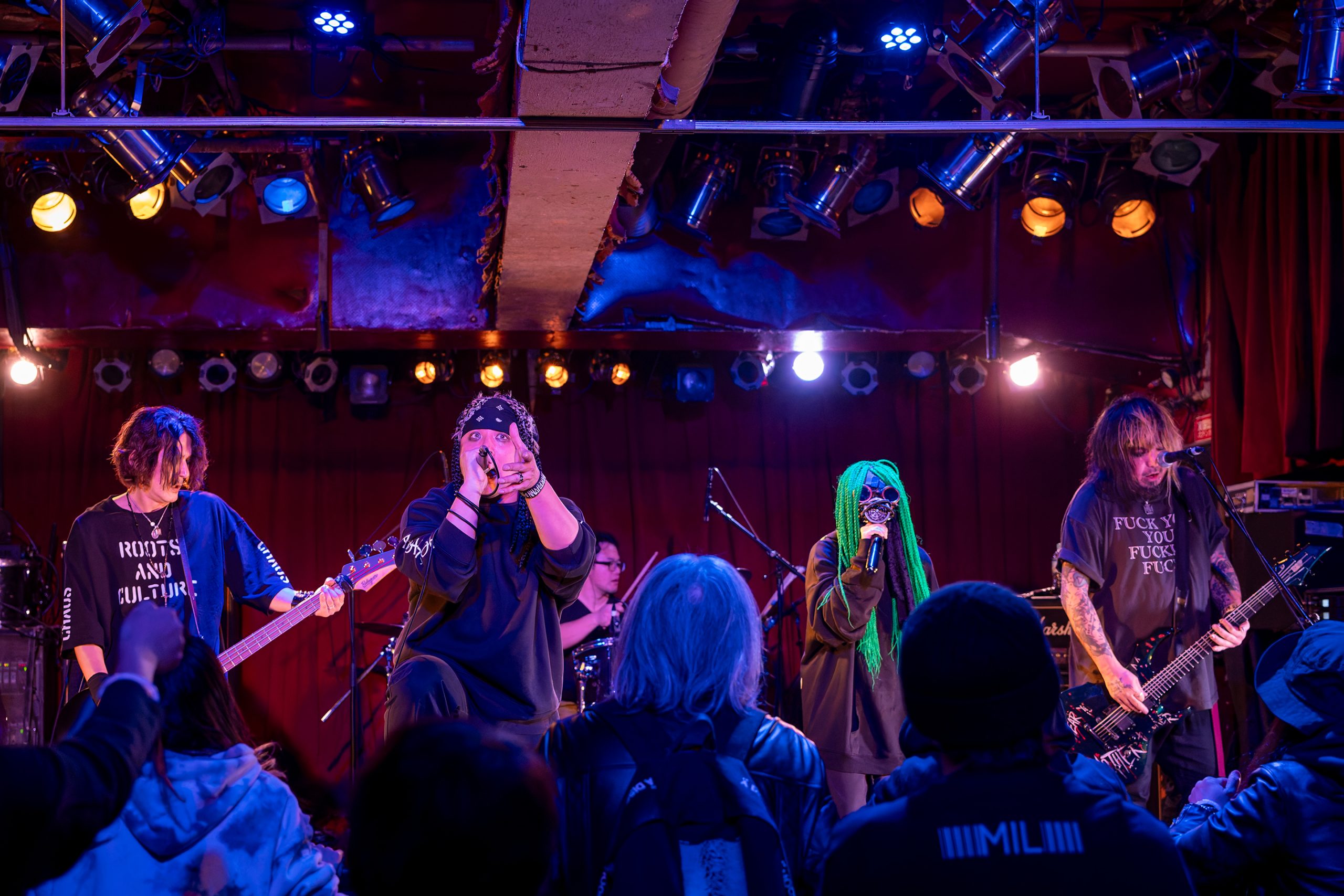 次に登場したのは各自実績あるバンドから集まったLOUD PUNKバンド”OXYMORPHONN(オキシモルフォン)”始まるやいなや超絶技巧ラウドサウンドが怒涛のように会場を支配してゆく。会場の奥まで突き抜けるようなボーカルとデスボイスが交互に絡み合い、会場の空気はガラッと変わり観客それぞれの体から湯気が出ているかのような熱気に包まれた。途中でドラムが交代するという珍しいシーンもあり、そこからさらにパワフルな演奏へと展開して圧巻のステージだった。