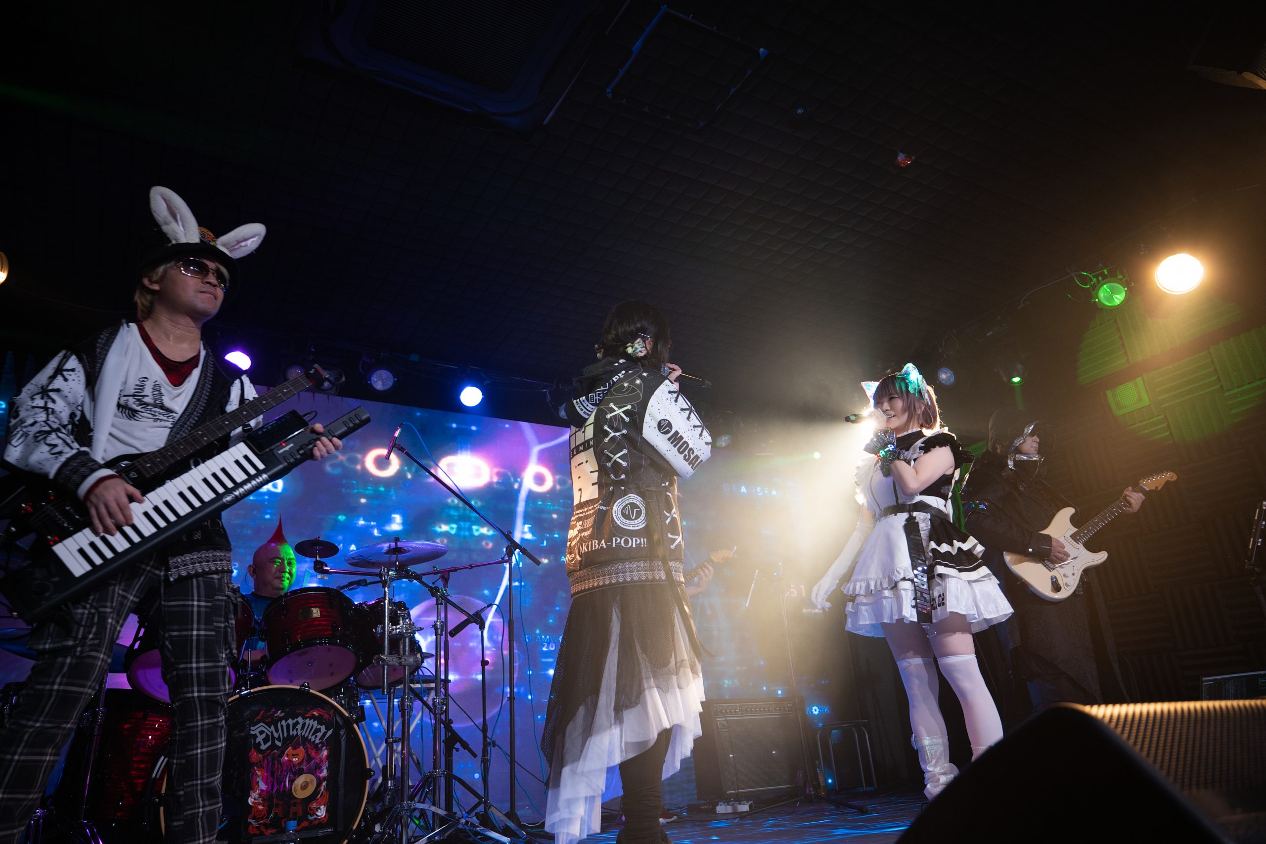「A.K.I.B.A. AKIBA POP!!」と声を上げる観客たち。ライブのバトンは、MOSAIC.WAVへ。み〜この「それでは始めるぞー!」の声を合図にMOSAIC.WAVが演奏したのが、『うじゅたま☆うじゅりんぱ』。み〜この歌声や振りをリードに場内中の人たちが胸を弾ませ、 踊るビートに身を預け、ときにクラップをしながら、メンバーらと一緒にマジカルなポップワールドを作りあげ、無邪気にはしゃいでいた。間奏では、魔法の言葉にあわせ、みんなで拳やペンライトを高く振り上げ、一体化した楽しさを作りあげていた。