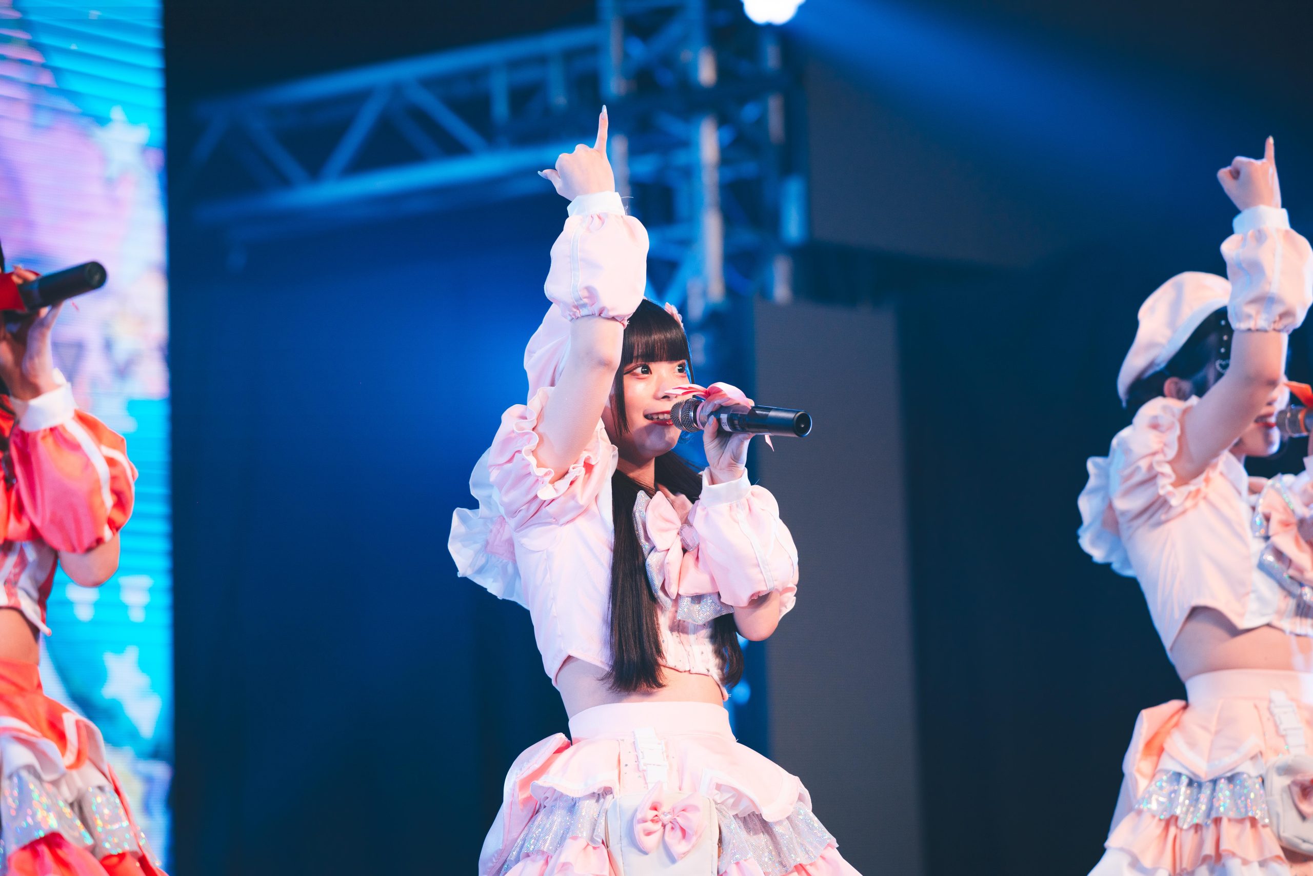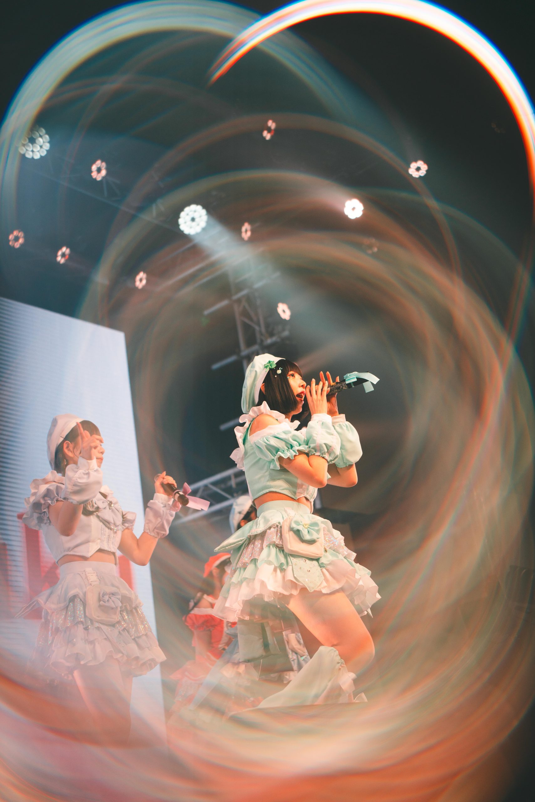 その姿へ熱いエールを送るように、『パンデミックサラウンド』が流れだした。一人一人が歌うたびに、フロアから飛び交うメンバーへ向けた応援の声・声・声。彼女たちはみんな涙声だ。必死に自分をとり戻そうとしても、激しく動いた感動と興奮と喜ぶ気持ちは、涙で蓋をしない限りは収まらない。涙声で「そんな僕を変えたくて 心の奥底から叫べ」「輝くあの場所ももう怖くはないよ」と響かせる歌声に向け、熱いエールを送らずにいれなかった。「いつだって僕は歌うよこのパンデミックサラウンド」と涙色に滲んだ声に向け、フロア中から、たくさんの拳がエールを贈るように突き上がっていた。夢を乗せて響かせたこの日の歌が、Zepp Shinjukuへと続く道の上にどんな足跡をつけてゆくのか、これからが楽しみになってきた。