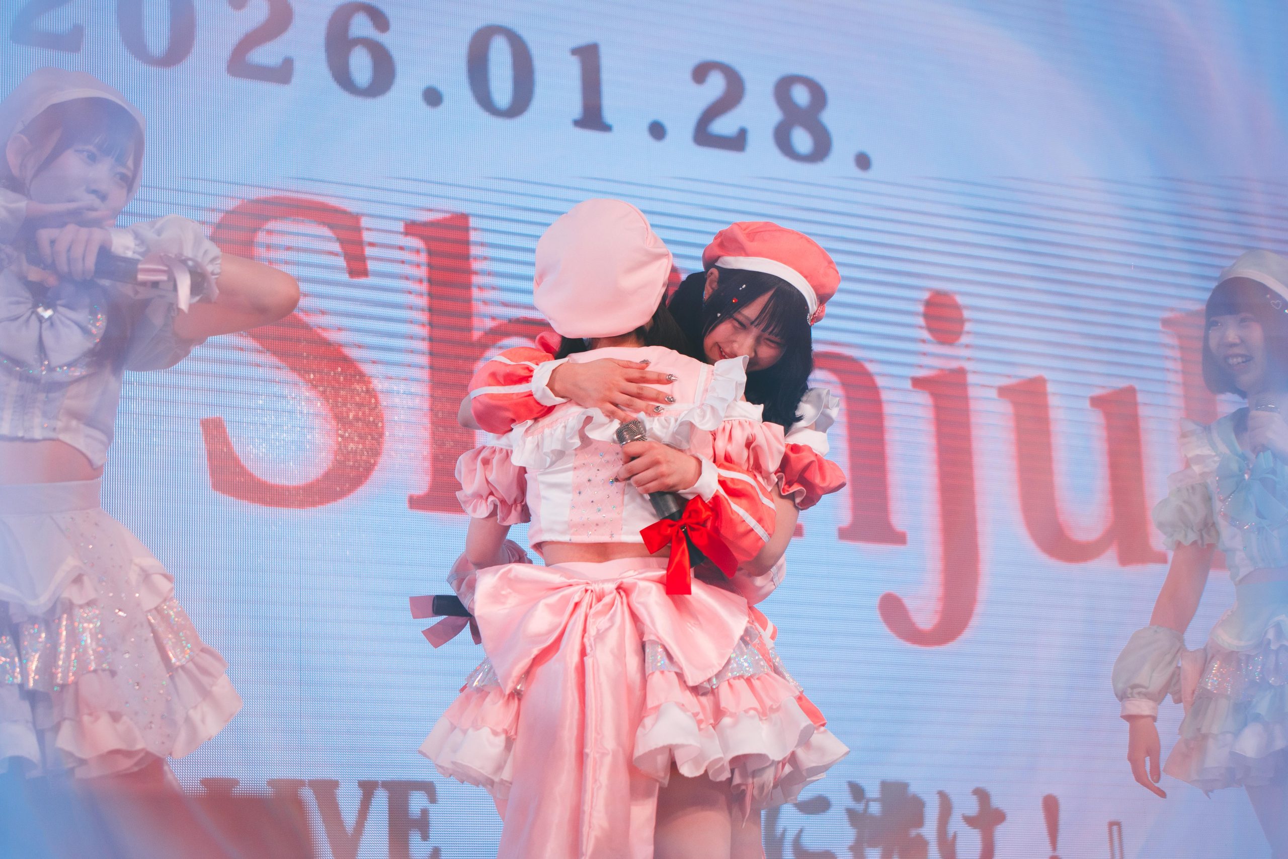 次の曲を歌おうとスタンバイをしたメンバーたち。と、背景のスクリーンに流れたのが、ここへ至るまでのライブ映像の数々。その中でメンバーらが口にしていた「これは、夢への軌跡」「今は今しかないからさ」「夢を信じて活動をしたい」「どんな変化ももう怖くない」などの言葉。メンバーたちは驚きながら、その映像を見つめていた。彼女たちは「Zeppに立ちたい」「強く望めば、夢は叶う」と、自分たちへ言い聞かせるように、過去のライブ映像のMCで語っていた。その言葉を受けてスクリーンに映し出されたのが、「2026年1月28日、Zepp Shinjuku」でのワンマン公演『宇宙に沸け!』決定の報せだった。興奮どころか、感動のあまり、涙を流して喜ぶメンバーたち。