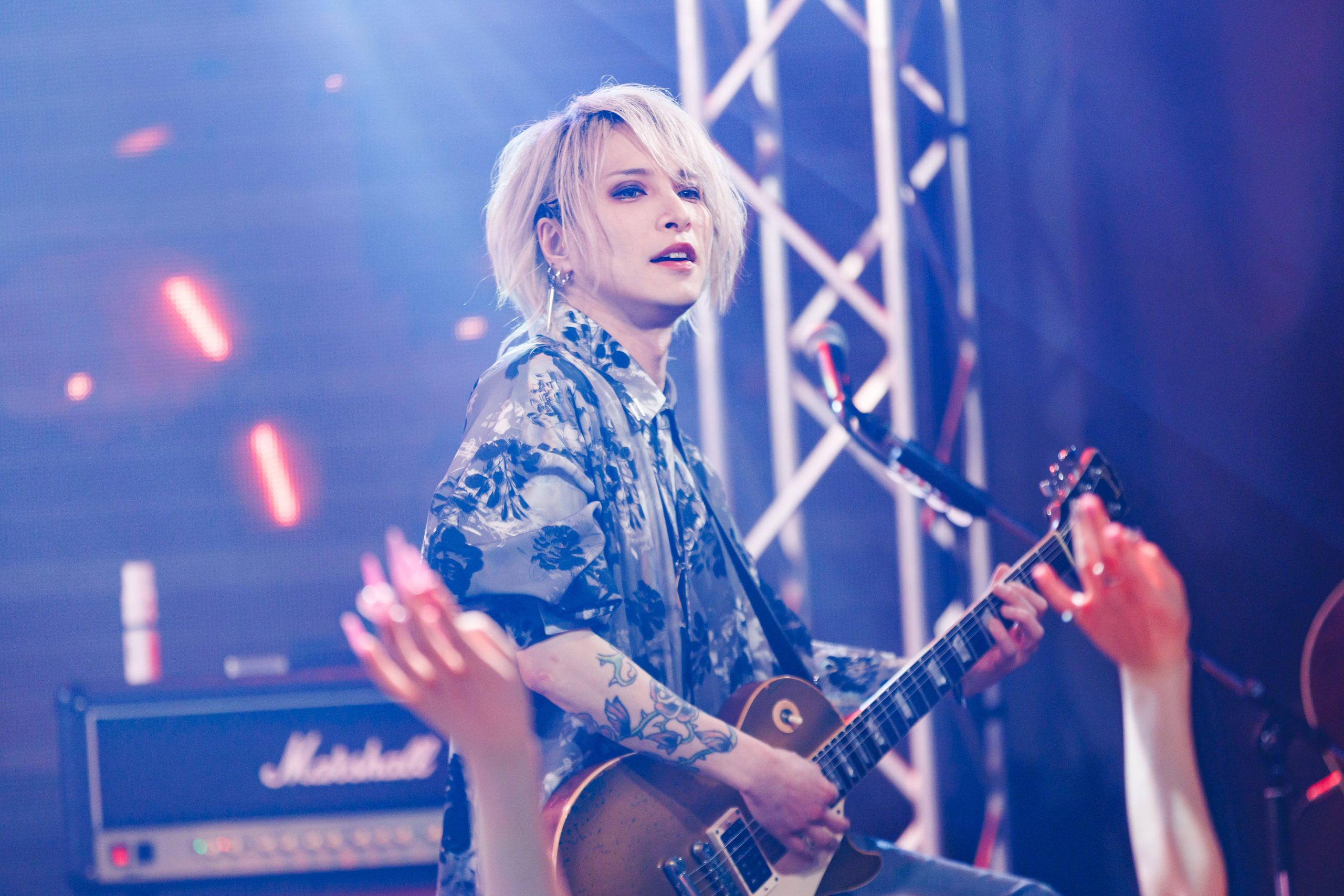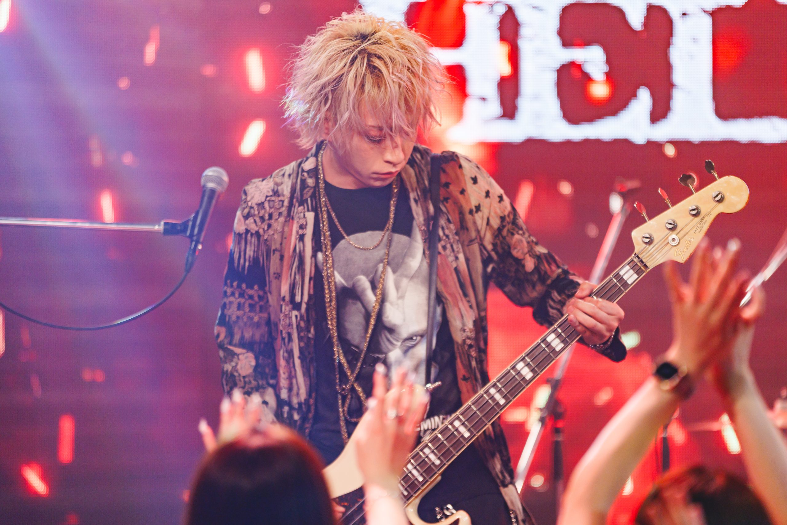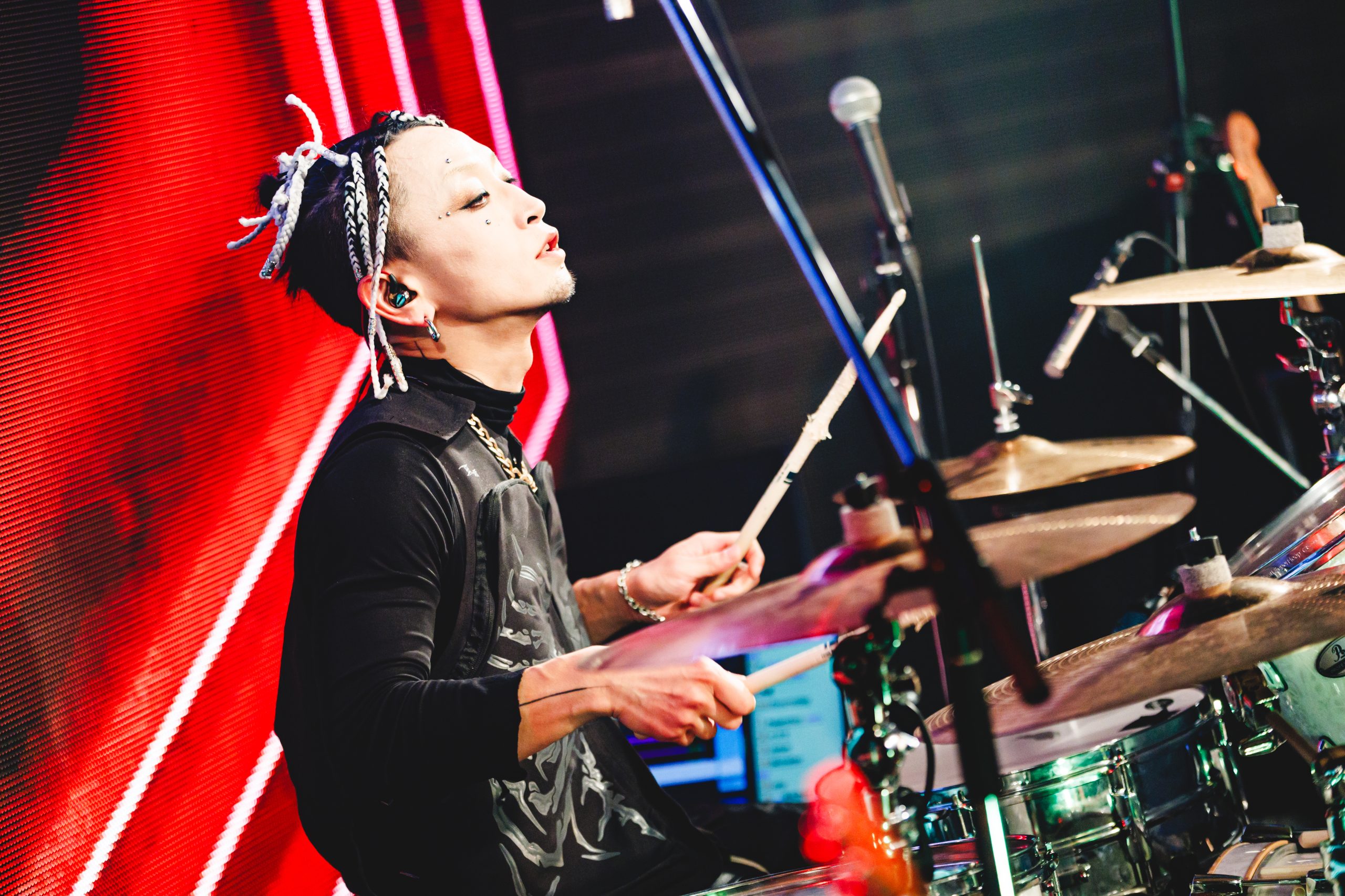 「ぶっ飛ばしていくぞ」と煽ったのが、千歳。その気合と気迫を示すように、『Doomsday』では熱量の高い演奏を4人がぶつけていた。この曲では、夢人もギターを演奏。四身一体となり、豪放で無頼な歌と演奏を突きつけ、観客たちへダイレクトに刺激を与えてゆく。でも、サビ歌に親しみを覚えれば、感情の揺れに合わせ、カメレオンのようにいろんな表情を描きだしていた夢人の声も魅力だ。終盤には、ヘドバンの嵐が巻き起こる様も誕生。そして…。