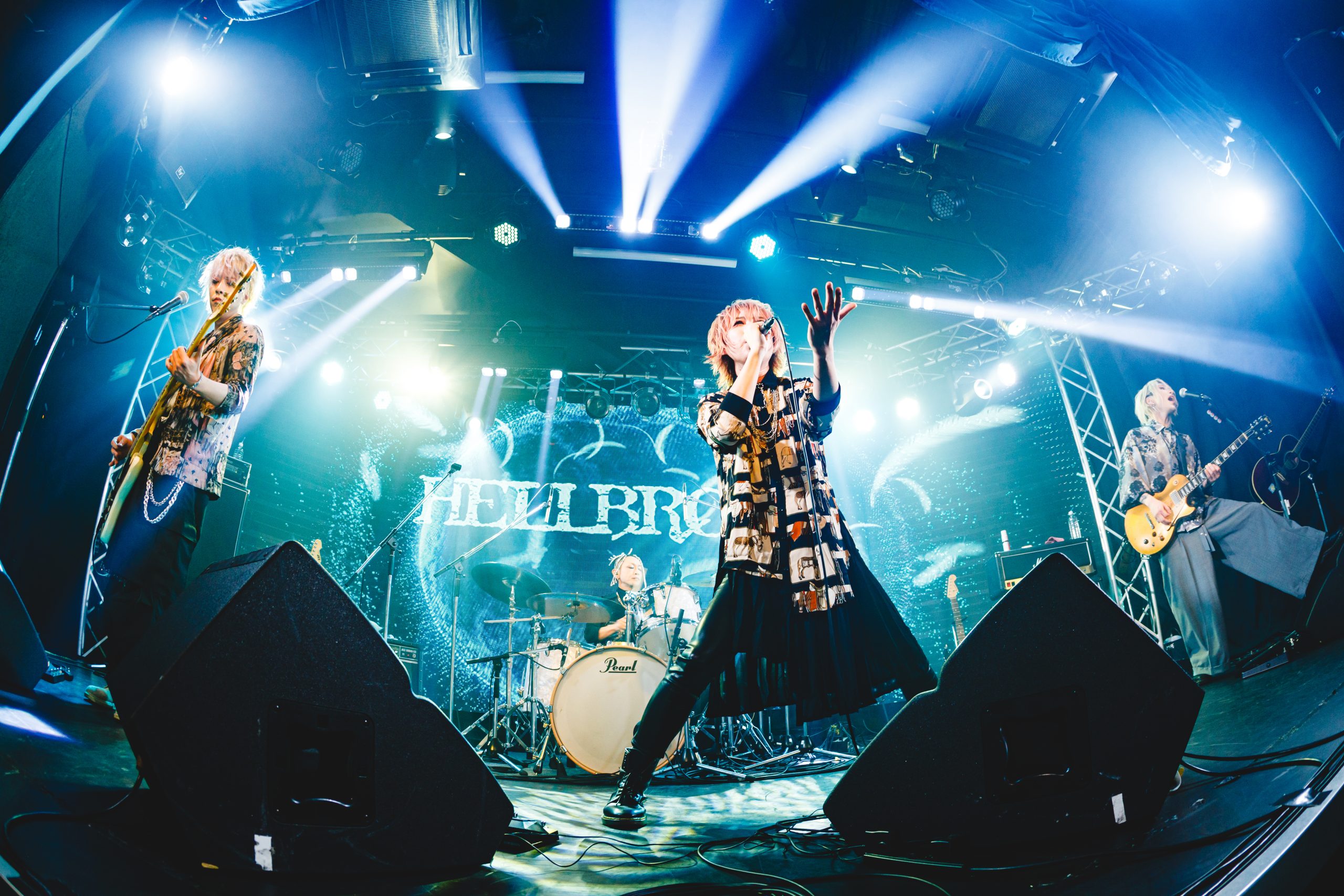 千歳の熱い煽り声も印象的だ。夢人も、観客たちから荒ぶる声を引きずり出す。これまでに香らせていた優しいモードを消し去り、『監獄』では4人とも、荒ぶる歌声や演奏を通して観客たちへ挑みかかっていた。でも、サビで親しみあふれる姿を提示。折り畳みやヘドバンから咲き誇る様まで、HELLBROTHは硬軟巧みに織り交ぜた姿を示し、観客たちとの心の距離をさらに熱く縮めてゆく。