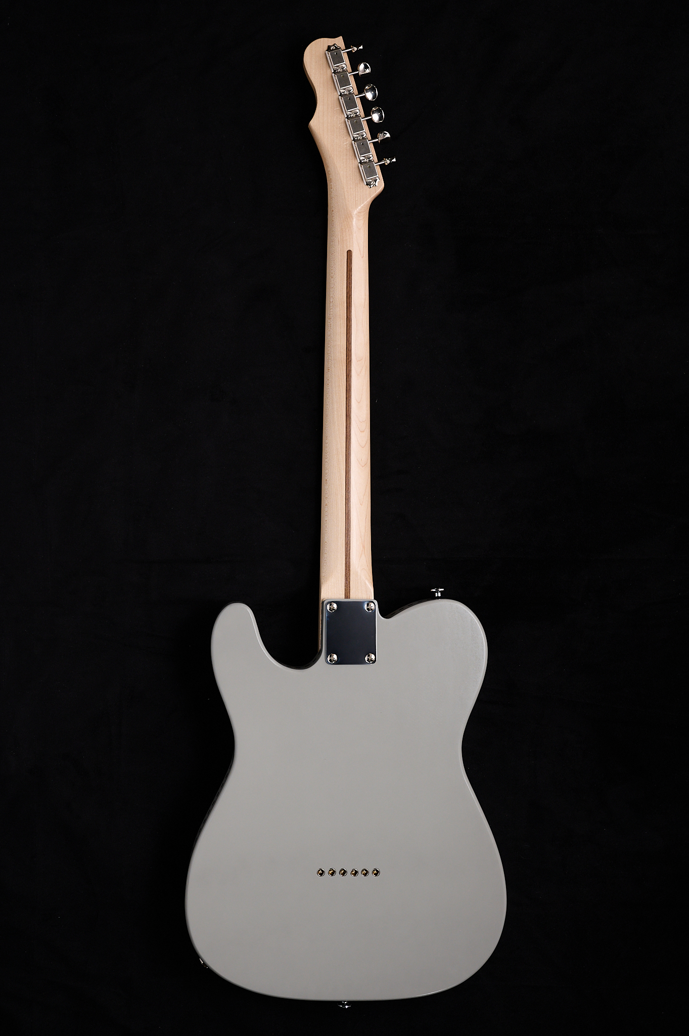 『ネックはワンピースのメイプルネックで、ローズ指板に比べるとパキっとする印象のサウンド。アルダー材ボディーと相まってフロントのミニハムバッカーは甘く、リアピックアップは歯切れが良い。通常のハムバッカーほど太過ぎず幅広い音作りが出来て楽しいギターになった。グレイにブラックの差し色で本当にグッと来るカッコ良さ!気分が上がるね!』