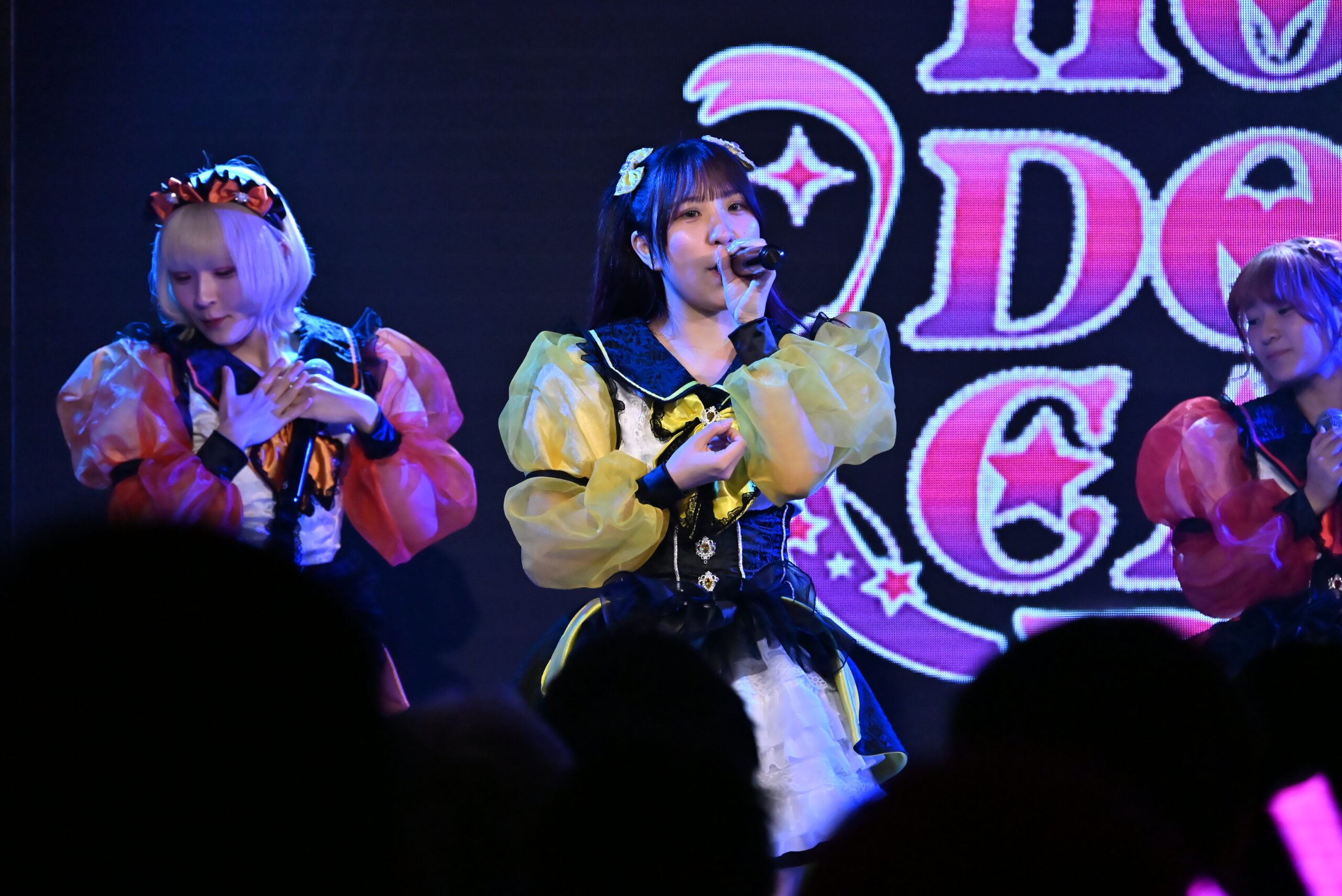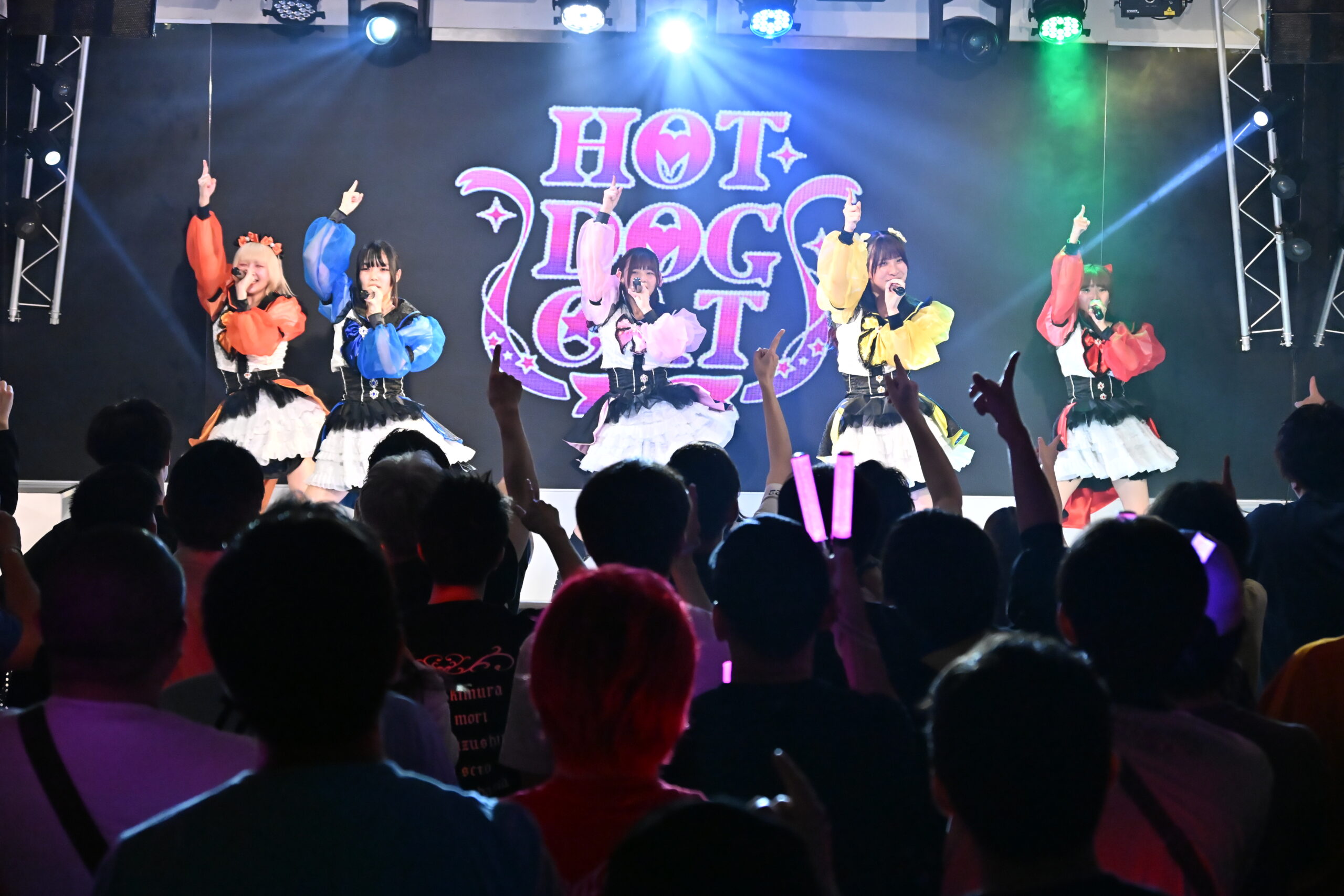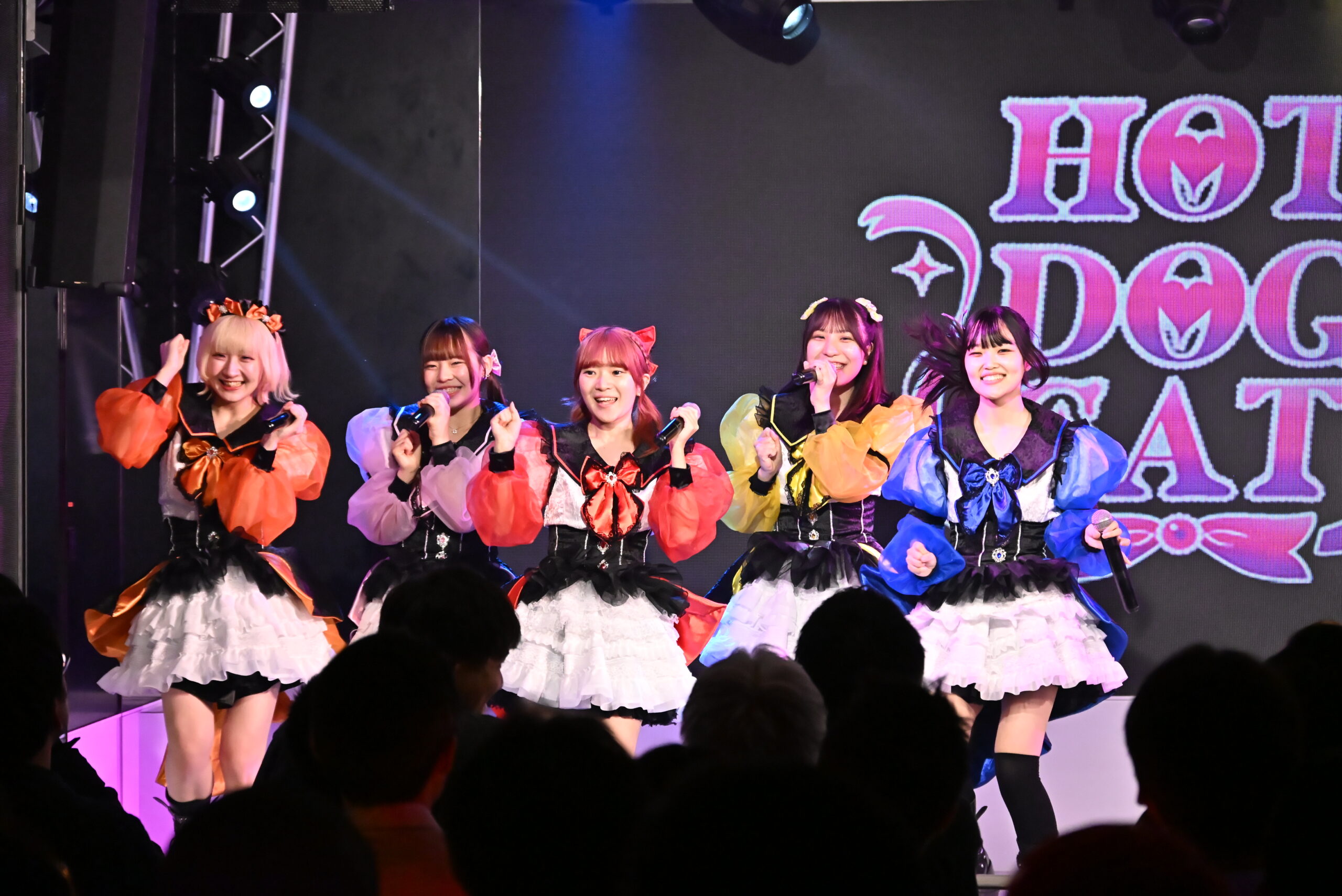 この日を待ちわびた人たちが、本当に多かった?多くの熱い声援を受け、HOT DOG CATのライブは『楕円形メリーゴーランド』から始まった。メンバーを一新。演者が変われば、グループの雰囲気も変わるのは当たり前。新たな血を宿したHOT DOG CATは、とにかく明るかった。輝きに満ちたいう言葉が相応しいくらいに、5人とも、その姿はキラキラ眩しかった。ちょっとたどたどしい自己紹介は、ご愛嬌。活動初期から歌い継いできた『オフィーリア〜君に会いたくて〜』でも、最後に届けた『オリンピック・ハイテンション』も、そう。5人とも、まずは自分たちが輝くことが、HOT DOG CATを未来へ導くことを自覚している。だからこそ笑顔で、目の前にいる人たちに力いっぱい元気を届けていた。 何事にも天真爛漫な姿で、全力でぶつかっていく、あのHOT DOG CATが目の前にいた。カラフルな5つの甘いドロップのような今のHOT DOG CATが、これからどんな甘い刺激と楽しさを味わわせてくれるのかが楽しみになってきた。