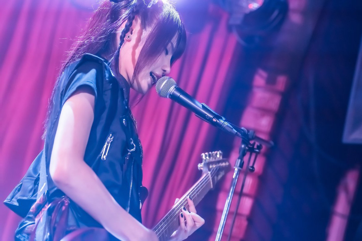 琴海の甘く囁く声から始まった楽曲は、来未の繰り出すハンマーを打ち鳴らしたような衝撃的なギターの演奏を合図に本編へ。ミドルメロウな『アマリリス』では、うねるような重厚なリズム隊の演奏が、身体を直撃。歪む音をザクザクと刻むギターの演奏が胸を貫く。その上で、妖艶さを持ちながらも次第に抑揚してゆく琴海の歌が気持ちを熱く揺さぶる。曲が進むごとに、琴海の歌声が感情を露にしてゆく。『アマリリス』、とてもスケールの大きなドラマを描きだす楽曲だ。バックライトに照らされた、両手を左右に大きく広げ、十字の姿になった琴海の姿も印象深く瞼に焼きついた。