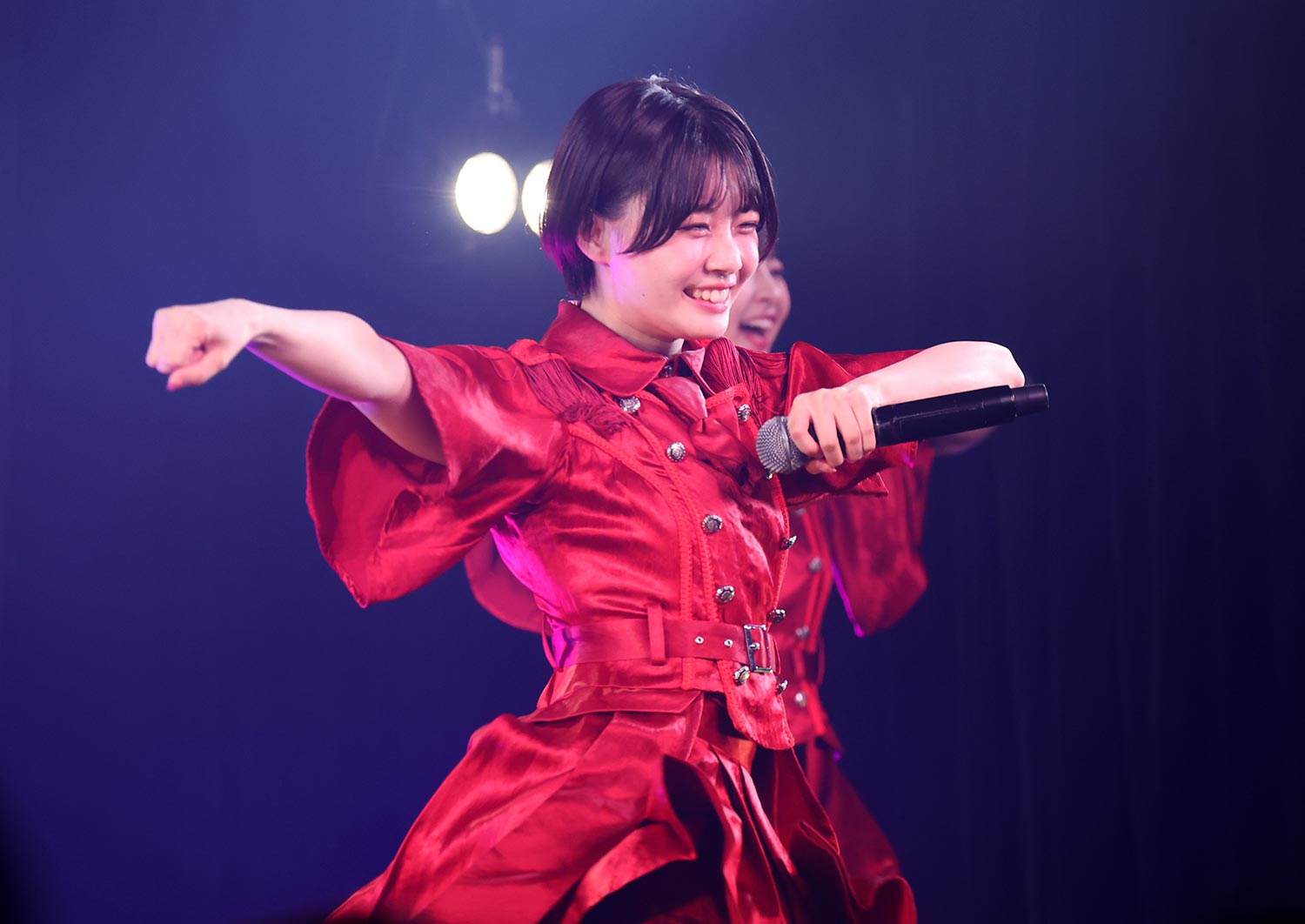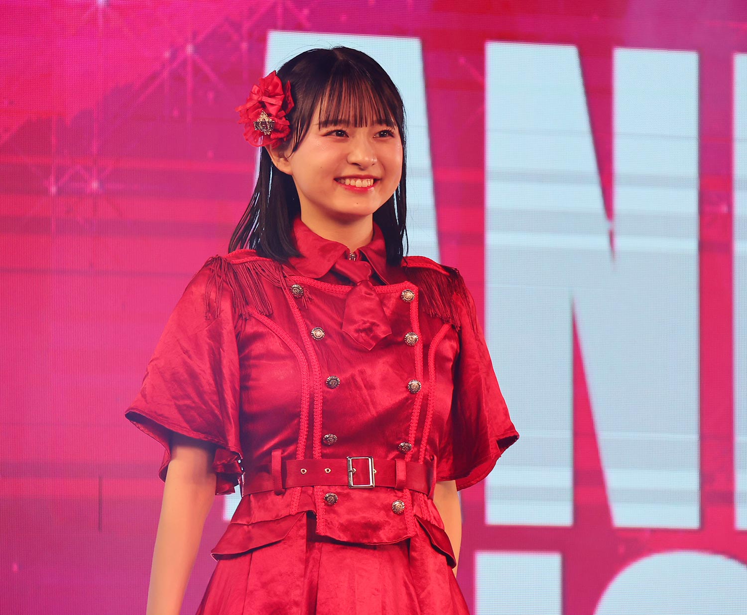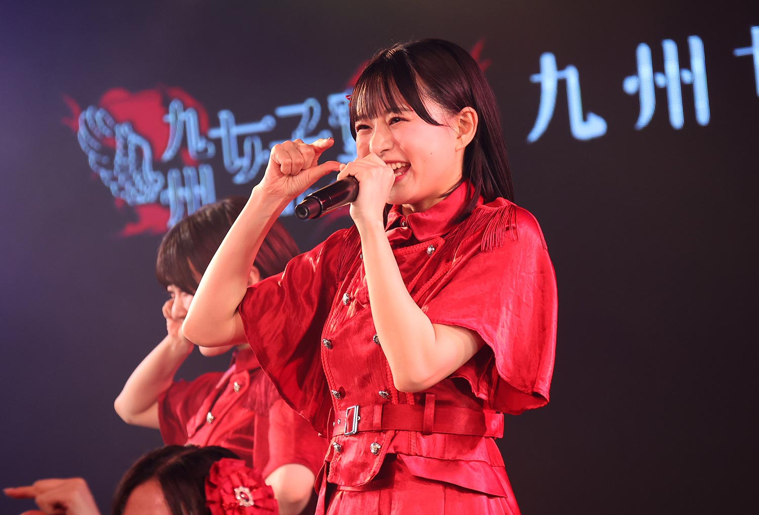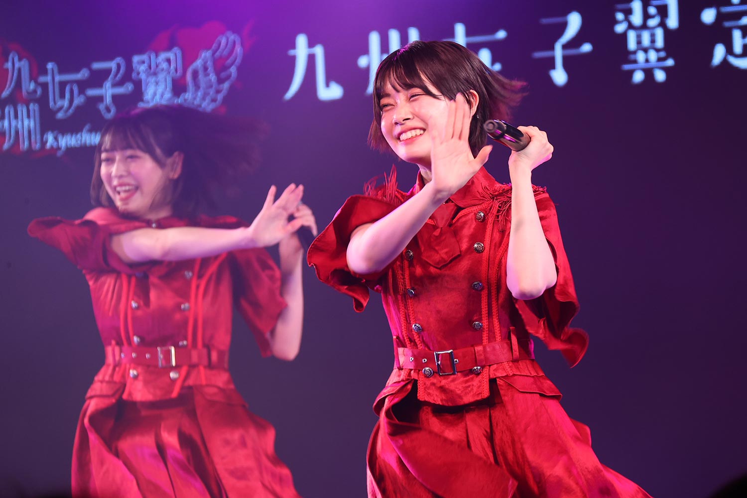 オープニングは恒例のSEだが、直前の第一幕の盛り上がりの余韻がまだまだ会場に留まっていることもあり、冒頭からステージ上のメンバー、会場のファン、どちらもテンションマックスの状態でスタートだ。今回の前半戦は、木城応援企画、とでも言いたくなるような“元気さ”を感じられ楽曲がセレクトされているようで、「Non Stop Kyushu」「Chocolat」「私だけのArmor」「キミは太陽」と新旧織り交ぜた構成で、元気さ、明るさ、楽しさを、メンバーもファンも、全身を使って表現。中でも実玖は気を吐き、場をリードしていく。まるで、九州女子翼の前身ともいえるI’S9(アイズナイン)の名曲「今日も全力で!」を地で行くようだ。