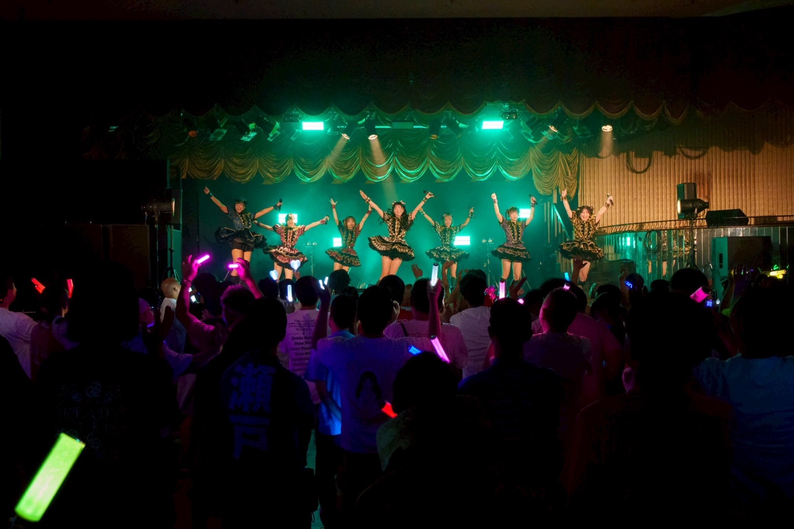 新曲の『猛暑モーション』は、「猛暑 猛暑 モーション」と弾けた声で歌う姿も印象的な、テンション爆上げ曲。ライブでこの曲に触れたときは、彼女たちと一緒に手にしたタオルを頭上高く振り回し、「猛暑 猛暑 モーション」と叫んでほしい。猛暑が吹き飛ぶ‥どころか、その空間が外の気温以上にアチアチの酷暑になる可能性も高いけどね。でも、その暑さを一緒に感じあってこそ夏曲であり、今の季節に似合う楽しみ方だ(ダンスホール新世紀は天井がとても高く、猛暑にならなかったのは救い?!)