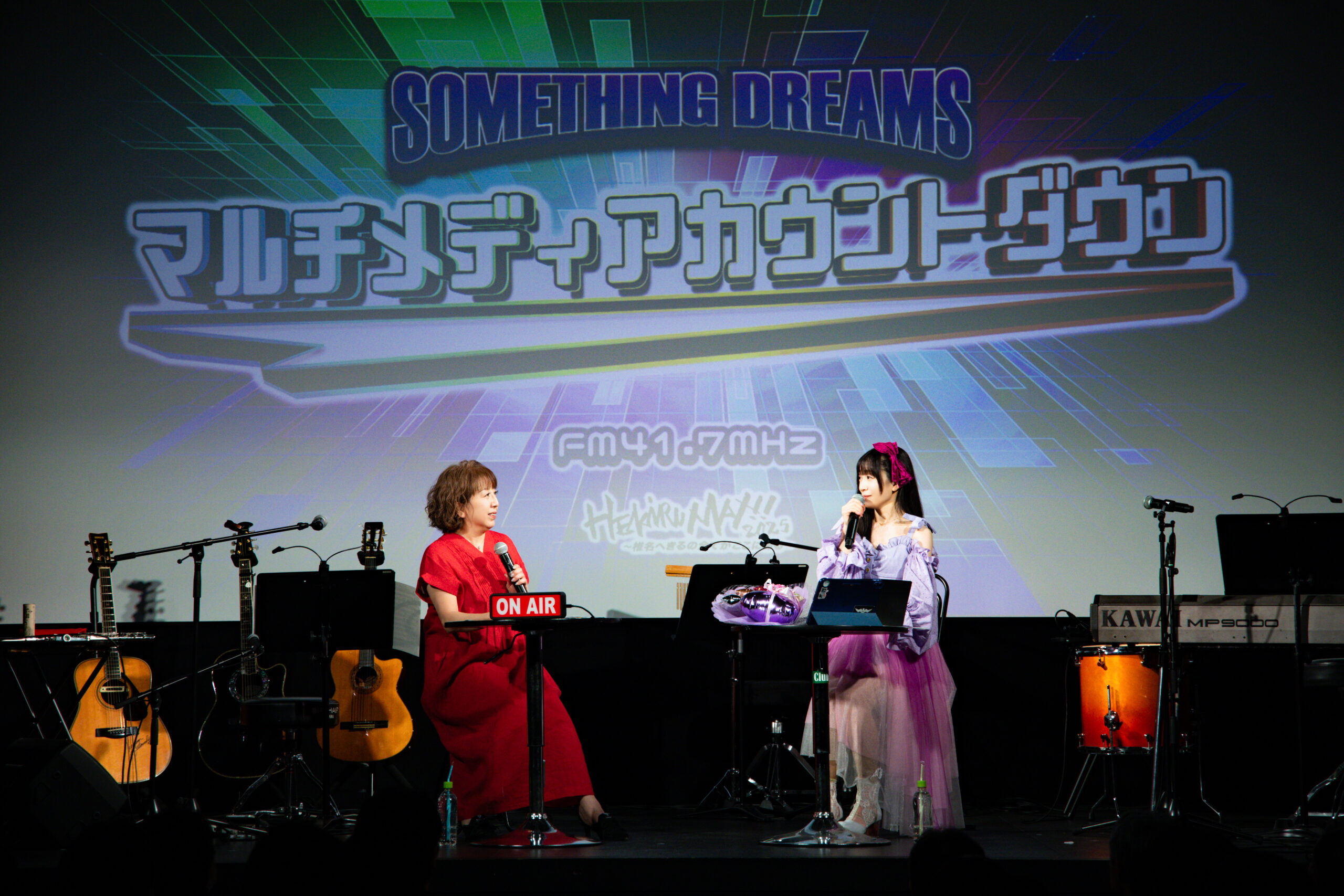 登場するなり、椎名へきるはすぐに冨永みーなを呼び入れた。30周年を祝い、冨永みーなは椎名へきるに花束をプレゼント。冨永みーなと椎名へきるといえば…伝説のラジオ番組「SOMETHING DREAMS マルチメディアカウントダウン」(以下:ドリカン)を通した関係。一緒にやっていたのが、1995年からの3年間。冨永みーなとは、1994年にアニメ作品「D・N・A² 〜何処かで失くしたあいつのアイツ〜」の中でも声優として共演。そこが、2人の初対面の場になったそう。2人とも、一つ一つの歩みを、記憶を辿るように語っていたのも印象的だった。