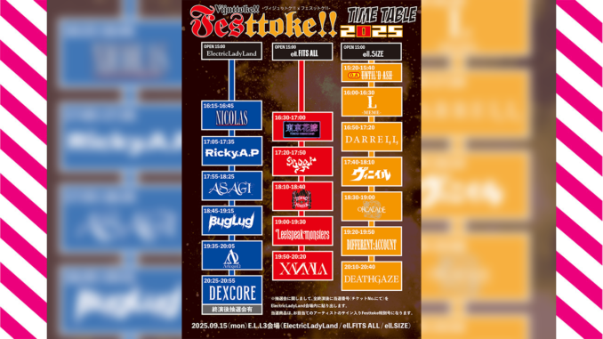 東海地区最大級!Vijuttokeがおくる東海地区初のビジュアル系サーキットイベント! Vijuttoke主催「Vijuttoke!!Festtoke!!2025」、2025年9月15日(祝・月)に開催! タイムテーブル解禁!