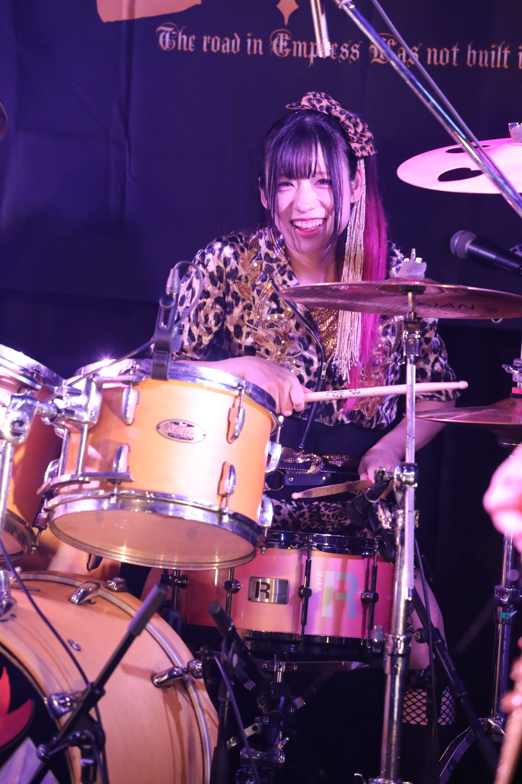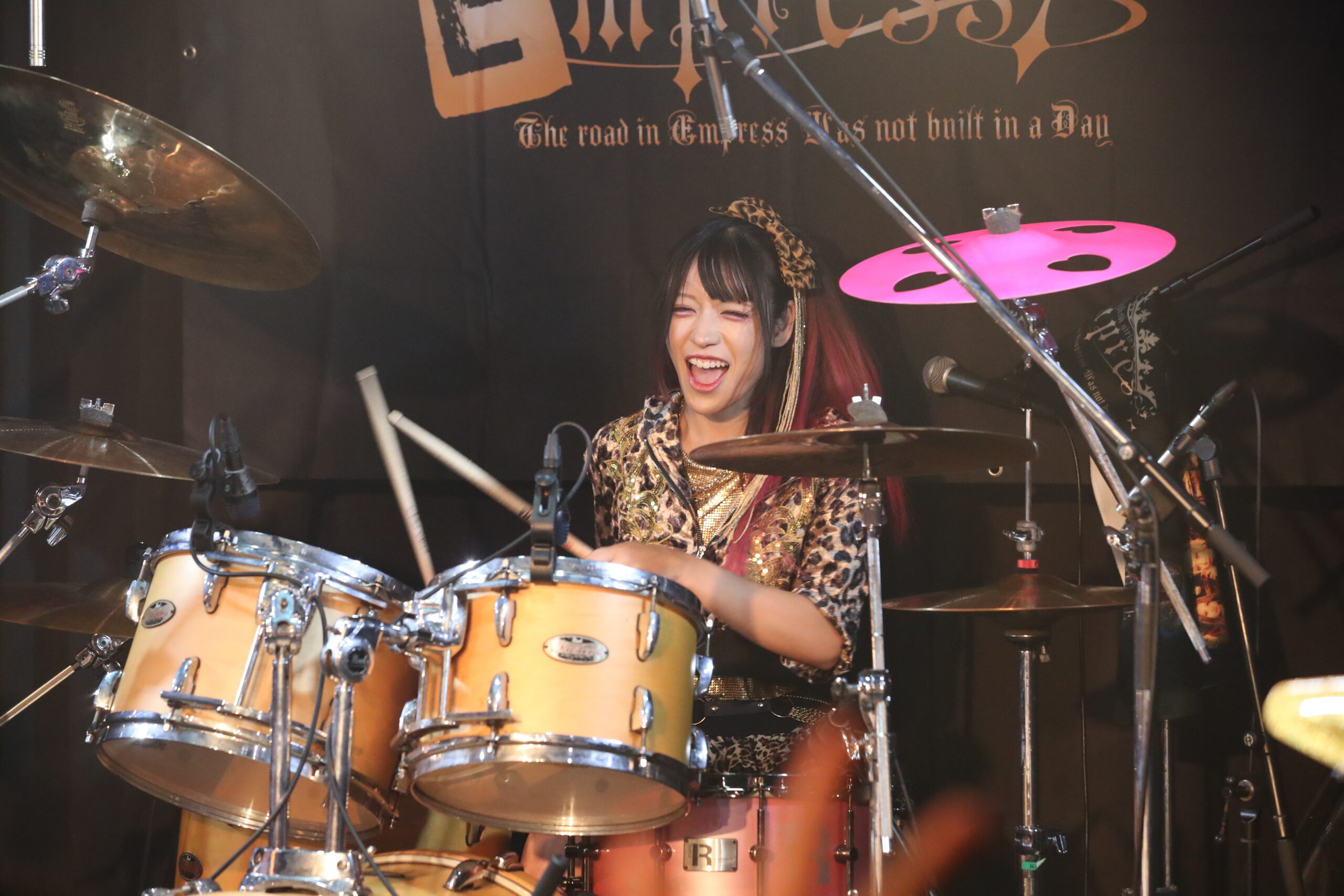 いおりの躍動したドラムビートと、スラップを利かせたマリーのベース、激しくドライブしたみつきのハードロックなギターの音が炸裂。『Howling』を通してEmpressは、今の彼女たちの方向性を示したハードロック然とした姿で、観客たちの気持ちを熱く騒がせた。さぁ、もっともっと狂ってしまえとばかりに、雄々しき女豹となった姿で攻撃を仕掛けるメンバーたち。その演奏と姿に触発され、気持ちが雄々しく奮い立つ。
