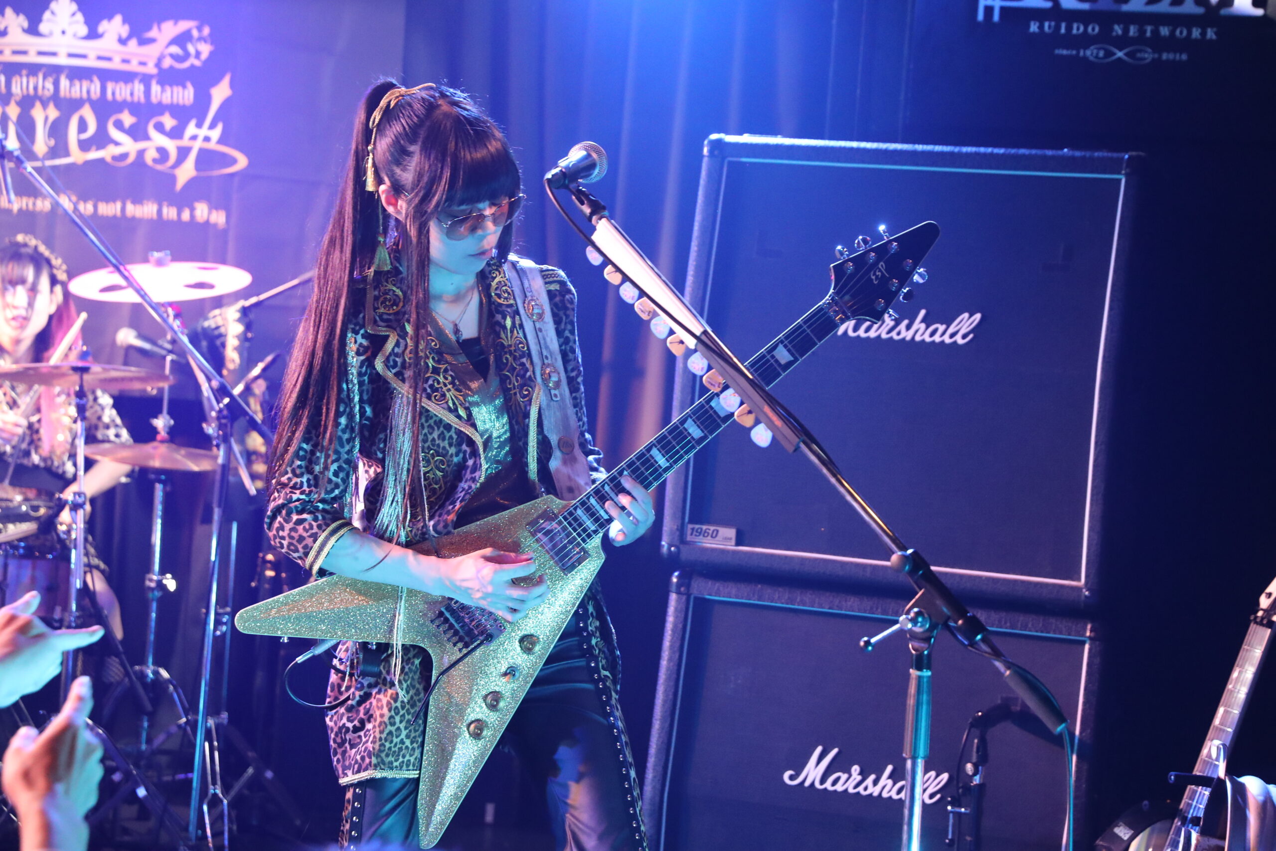 ここで、Empressは新曲の『Giving』を披露。「Give me your VOICE Give me your LOVE」と観客たちと声をかけあうのも、この歌を生かす要素になっている。『Giving』、まさに80年代のLAハードロックナンバーだ。荒々しくドライブしたリズム隊の演奏の上で激しくリフを刻む、みつき。ワイルド&ビッチな姿になったLeAが「Give me your VOICE Give me your LOVE」と歌いながら、観客たちと思いを重ね合う。誰もが初見ながら拳を突き上げて騒げば、LeAと「Give me your VOICE Give me your LOVE」と歌声を交わしあっていた。この曲、これからのEmpressのライブに熱情した景色を描いてゆく楽曲になるのは間違いない。