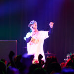 Psycho le CemuのLidaとYURAサマによるユニットのDaccoがトリを飾って登場。2人は、盟友たちが場内に作り上げた熱気に華やかさを描き加えるように、Dacco流のユーロビートナンバーの『Enjoy!!』を歌唱。2人は、身体中からエナジーをほとばしらせ、元気みなぎる声で「Enjoy」と歌いながら軽やかに踊りだす。フロアでも、2人の動きに合わせてエアロビクスに興じる‥いや、踊りはしゃぐ景色が生まれていた。2人のEnjoy Powerが炸裂するたびに、その熱の中へ観客たちも次々に飛び込み、一緒に振り(エクササイズ)を真似ながら笑顔で楽しんでいた。