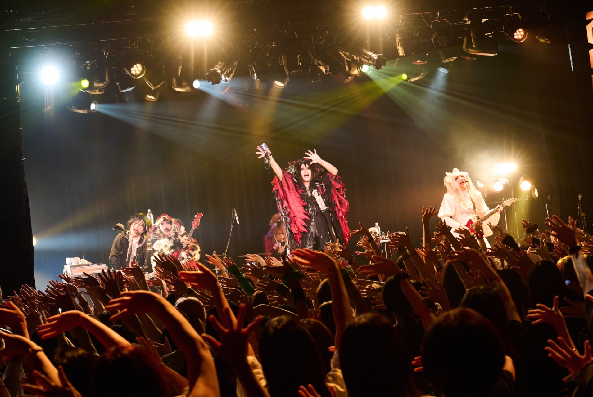 ぶうの声を合図に、メンバーらと観客たちが大声で「どぶねずみ」と叫びだす。続く『輪廻∞輪廻』では、フロア中の人たちが両手を高く上げてくるくると回れば、ぶうの歌声とメンバーらのかけ声を合図に、同じくフロア中の人たちが我を忘れて拳を高く突き上げる。「輪廻 輪廻 輪廻」のかけ声に合わせて場内中から次々に突き上がる拳、拳、拳。バンドと観客たちが本当に心を一つにしたとき、身体中に魂を揺さぶる熱いエナジーがほとばしる。激しく突き上がる無数の拳が、この場で力強く咲き誇る花のようにも見えていた。
