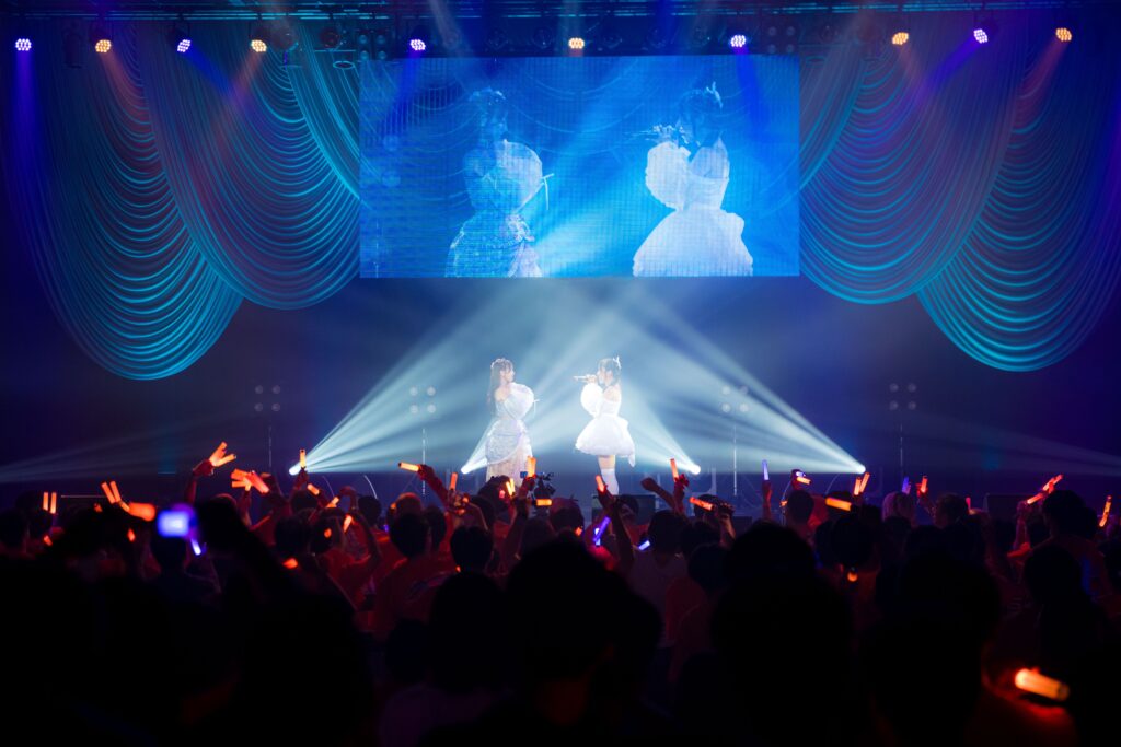 2人が歌ったのは、もちろんこの曲。沙藤まなか・咲山しほによるユニット”しおもん”のテーマ曲であり、2人の関係性を歌った『Salt & Sugar』。さっきまでの涙を吹き飛ばし、一緒に活動をしていたあの頃に戻った2人は、キラキラした輝きを振りまきながら、ステージの上で弾けていた。この2人が並んで歌っているだけで甘々な気持ちになる。フロアからも、最強に天然のアイドルたち(沙藤まなか・咲山しほ)に向かって「しおもん」の声が飛び交っていた。