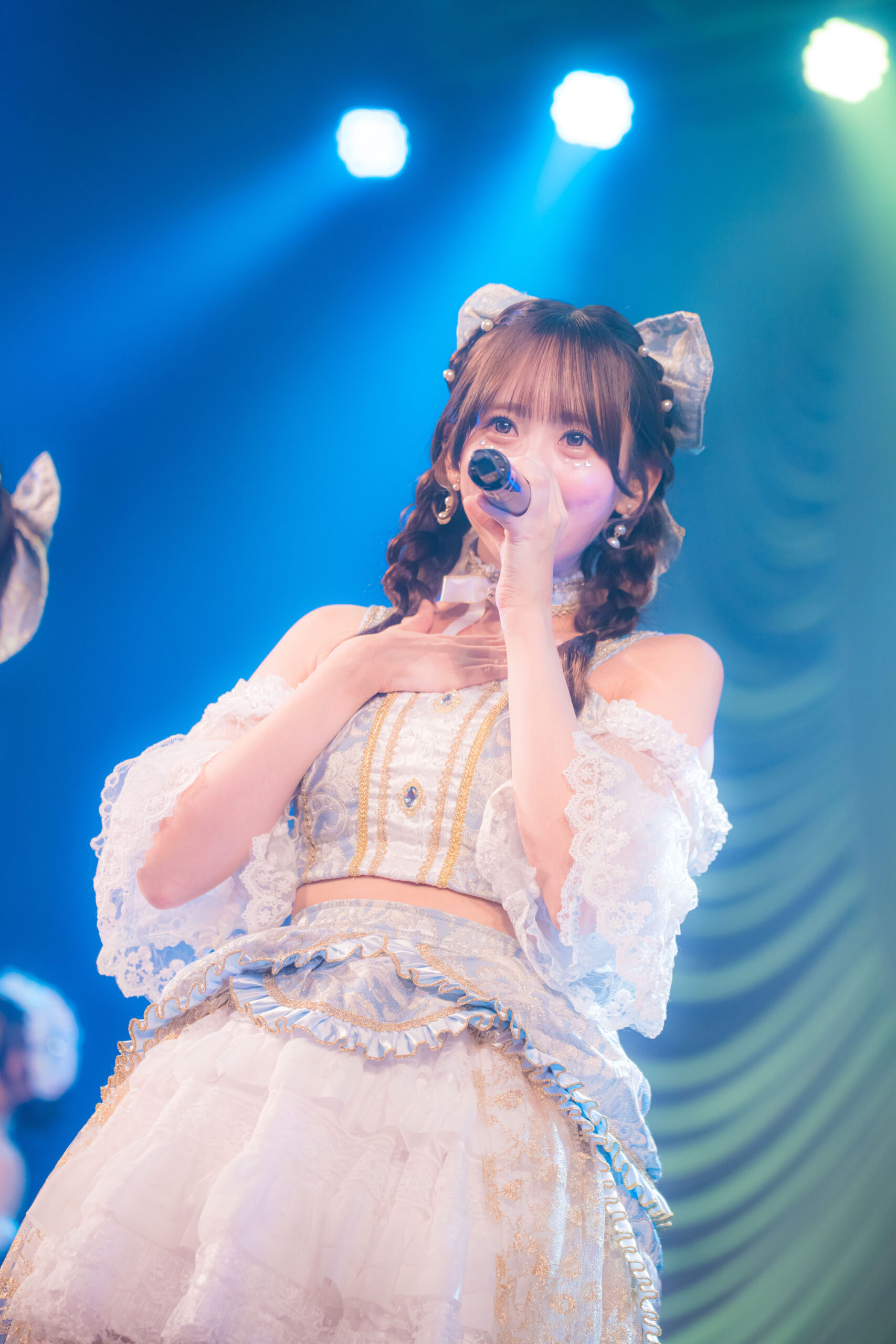ここで咲山しほが、同期加入であり、長年の盟友の沙藤まなかをステージに呼び入れた。咲山しほの卒業のために、沙藤まなかは沖縄から駆けつけた。さすが、最強の親友同士。歌う前のMCの時点でいろんな思い出が甦ってきたのか、沙藤まなかはすでに涙声だ。