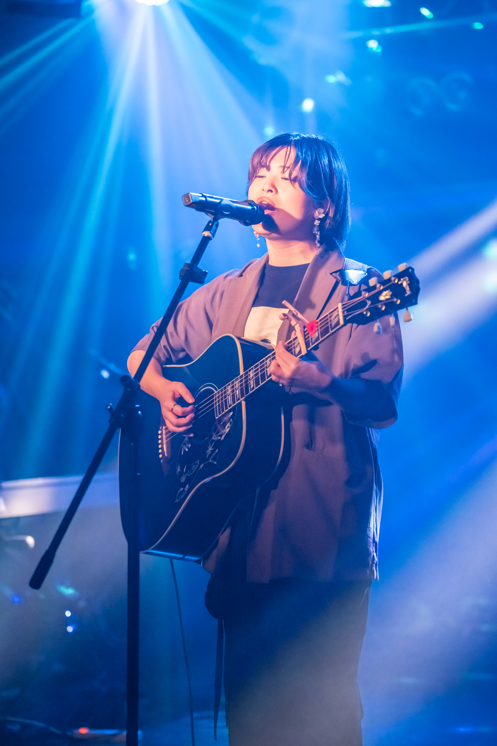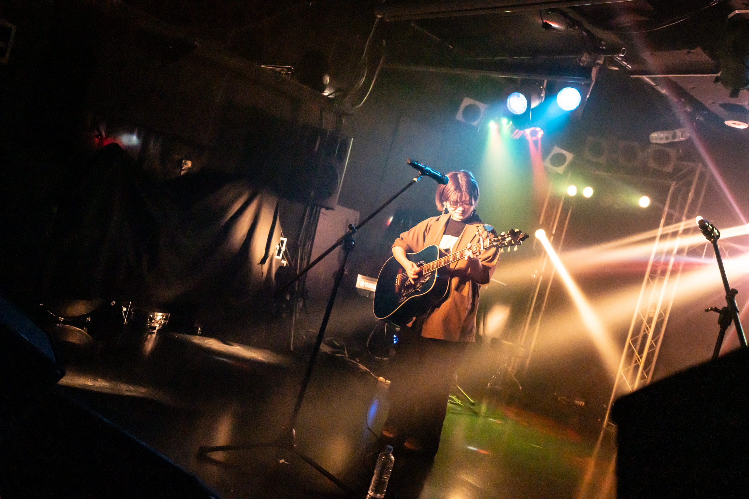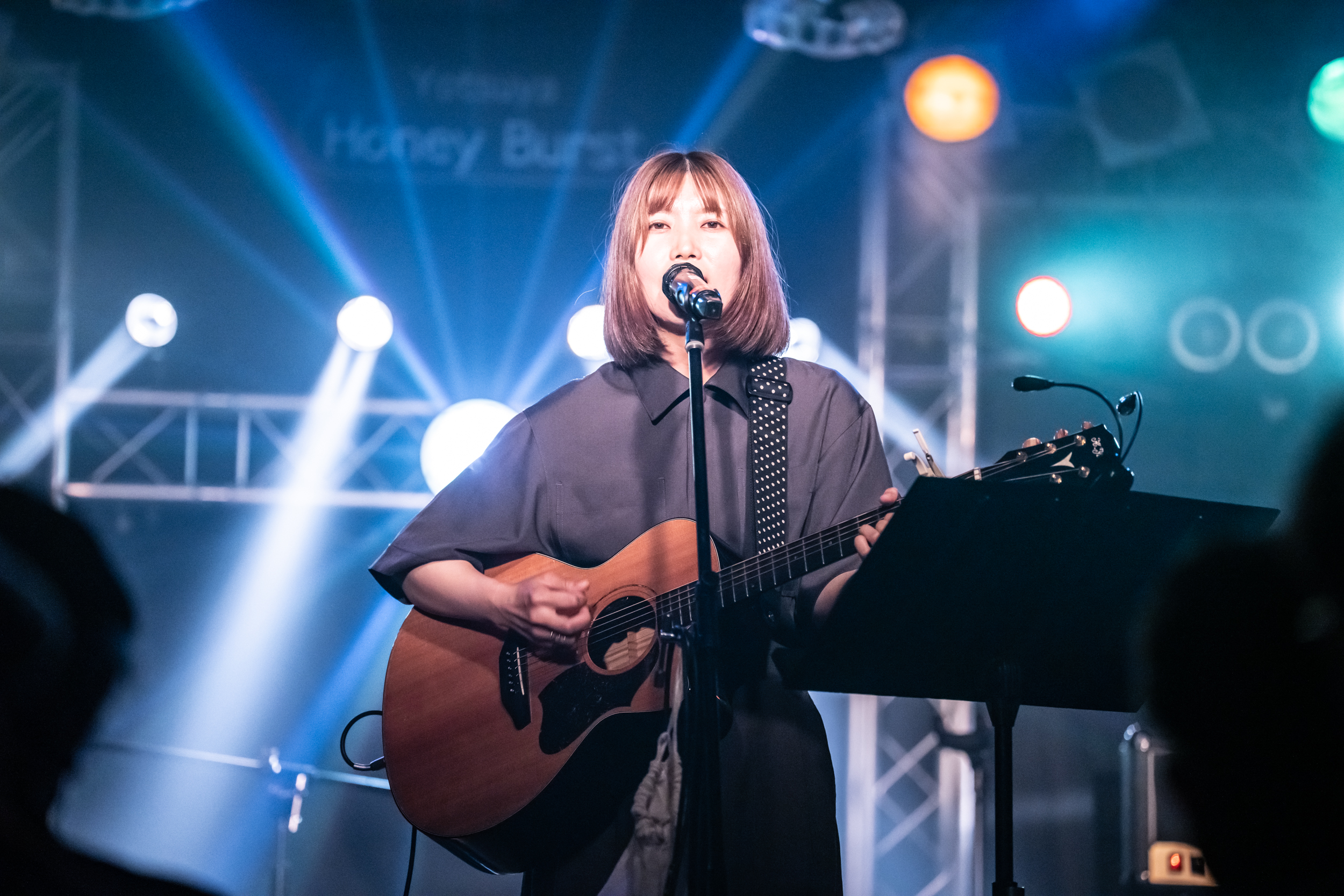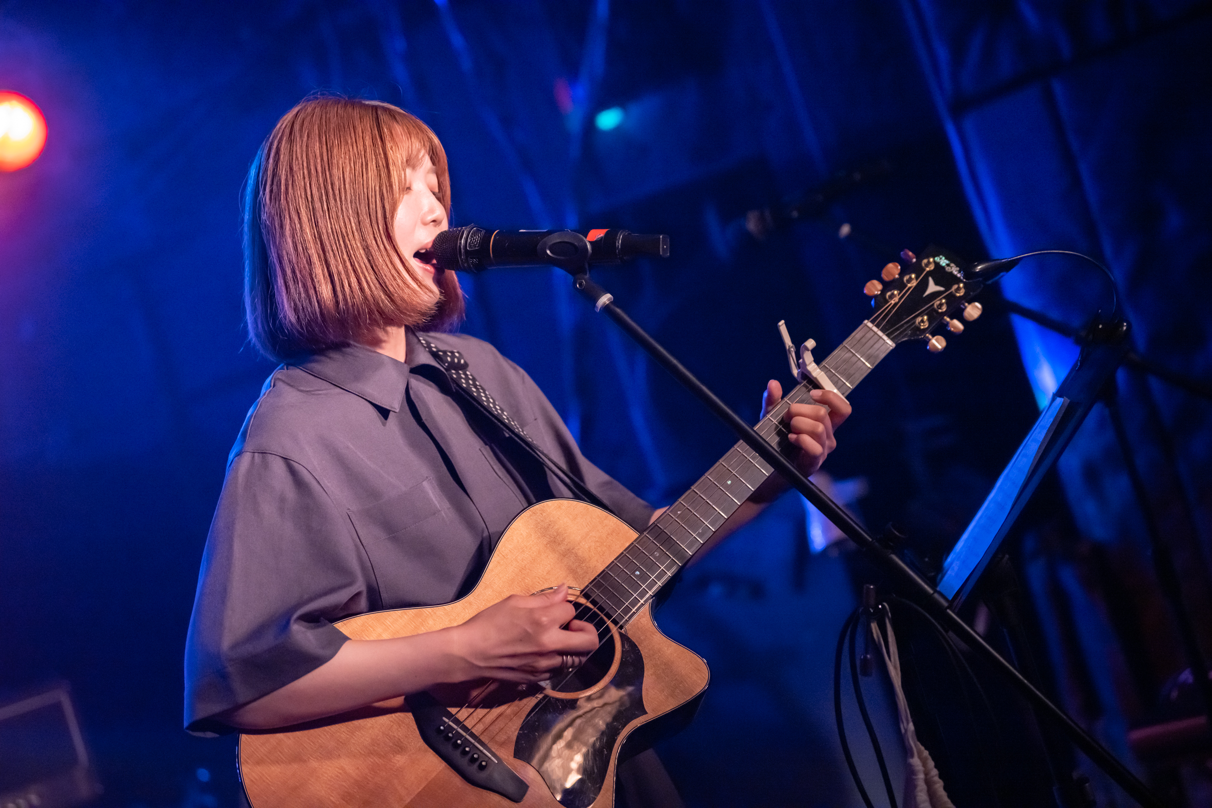 続く『消しゴム』では、低音域の利いた演奏を背景に、彼女自身も低音域の声を巧みに生かし、心の中に渦巻くもどかしい感情を吐き捨てるように歌っていた。力強さの中に、彼女自身の優しい心情が時折顔を出すところも印象的。ダウナーな曲調に乗せ、わだかまった心情や譲れない意志をパワフルな声でぶつけるように歌う様に、気持ちがずっと惹かれていた。