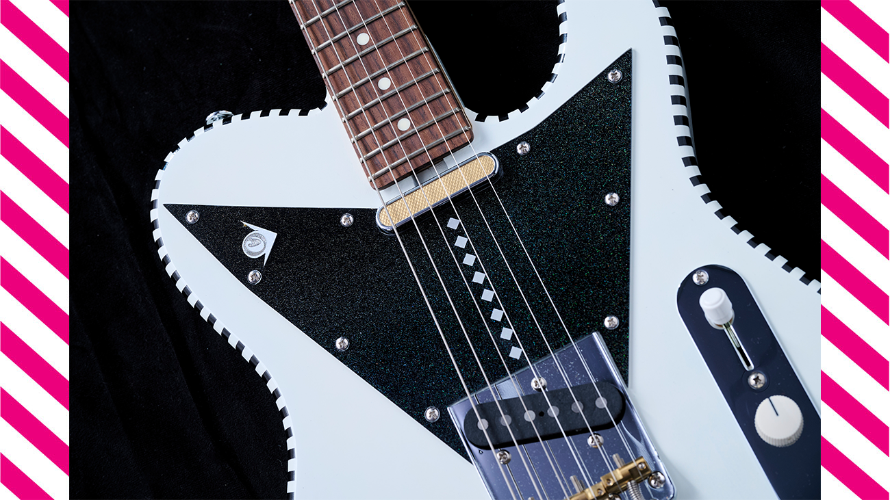 ピックガードはラメ入りブラックで、中央にダイスのデザインが加わり、ロゴマークも立体的で重厚感がある。ヘッドもV3と同じシェイプで白と黒が強調され、シンプルだが目を惹く。既存のV3モデルより塗装やデザインに手間暇をかけているが、今回はプロト価格なのでかなりリーズナブルな1本だ。